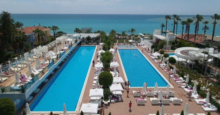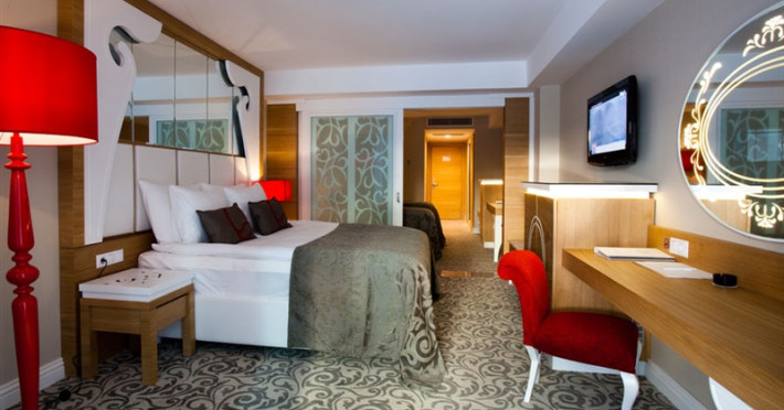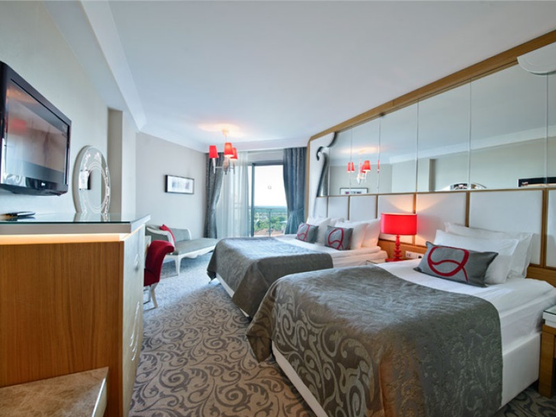 Facilitati hotel: Acest hotel de 5* ofera : restaurant principal; 2 restaurante a la carte (italian, otoman) 5 baruri, 3 piscine exterioare, piscina interioara, 2 tobogane, cabinet medical, centru SPA, coafor , lant de magazine, spalatorie.Alte servicii si facilitati: baie turceasca, sauna baie cu aburi, aerobic, aqua aerobic, sala de fitness, tenis de masa, darts, program de animatie, muzica live (o data pe saptamana), discoteca.