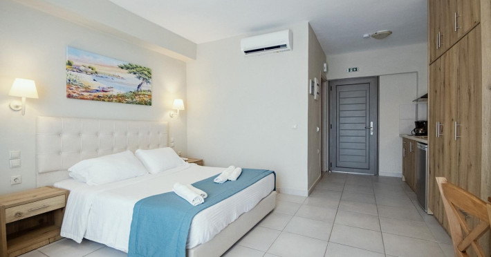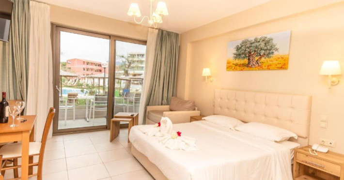 The 4* hotel Robolla Beach Aparthotel Roda Corfu is located at the end of the wave, offering a great sea view. In one of the most beautiful Greek Ionian Islands, guests could discover the island’s hospitality and enjoy dream holidays with high quantity benefits in a quiet environment, spending hours of relaxation next to the blue sea which offers the Ionian sea. Designed based on the needs of modern travelers, and has as his philosophy the heat of Greek hospitality.