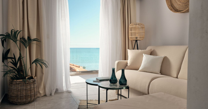 Shellona Luxury Rooms & Apartments is a magnificent beachfront apartment complex, located in the famous area of Laganas. It is a wonderful choice for everyone seeking truly relaxing holidays, either alone or with family and friends. The complex was renovated in 2020, with eco-friendliness in mind and with the use of eco-friendly materials.The complex consists of 3 buildings, offering 26 rooms in total: 11 double, 13 triple rooms, 1 baby suite and 1 apartment with 3 bedrooms. The building on the beachfront is named A, and offers 5 rooms, whereas Building B is on the back of the complex, offering 10 rooms. Finally, the 3rd building named C is located behind building B and all 11 rooms are double.The apartment complex is spread upon three levels (ground, first and second floor) and most of the rooms of building A & B offer a view of the sea, whereas all the rooms of building C offer garden views.Additionally, a few meters away, the guests will find a family restaurant under the same ownership, where they can enjoy the large and hearty breakfast and taste a wide variety of both traditional and international recipes.