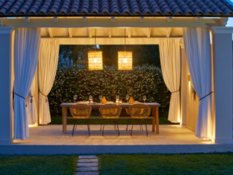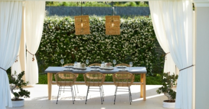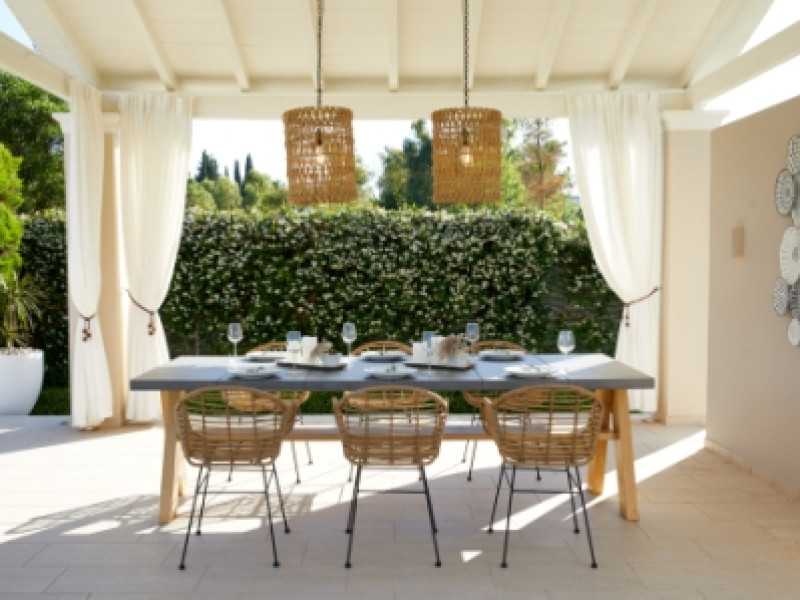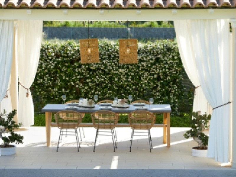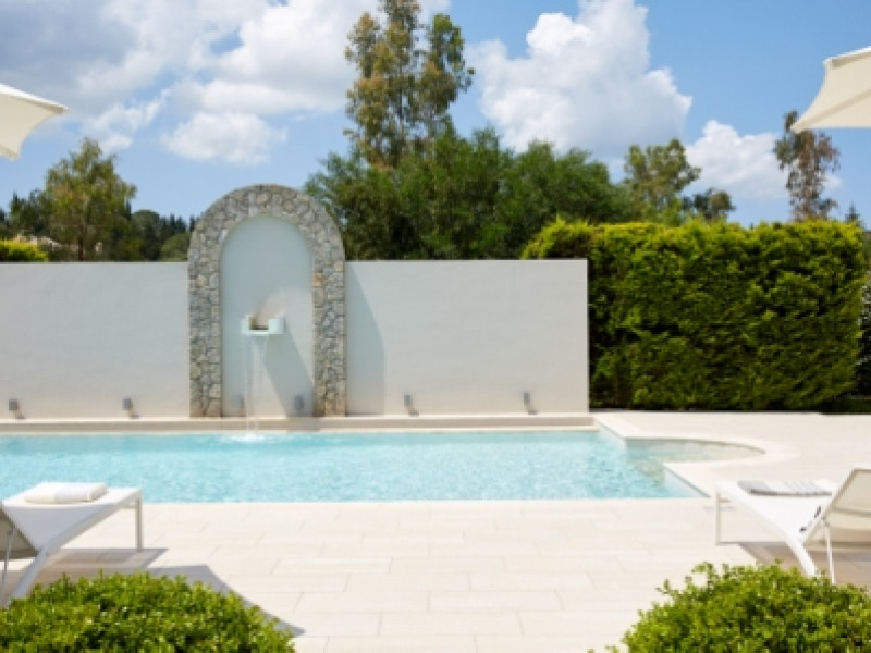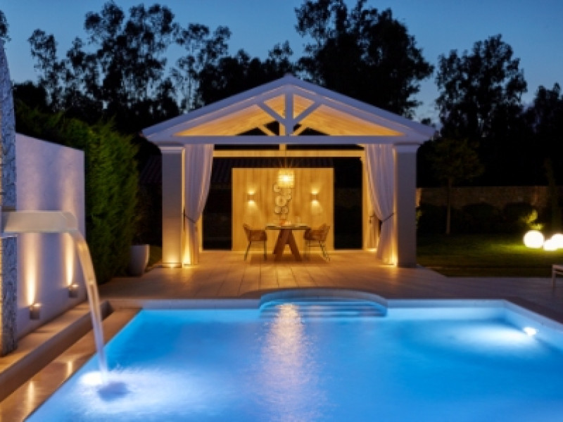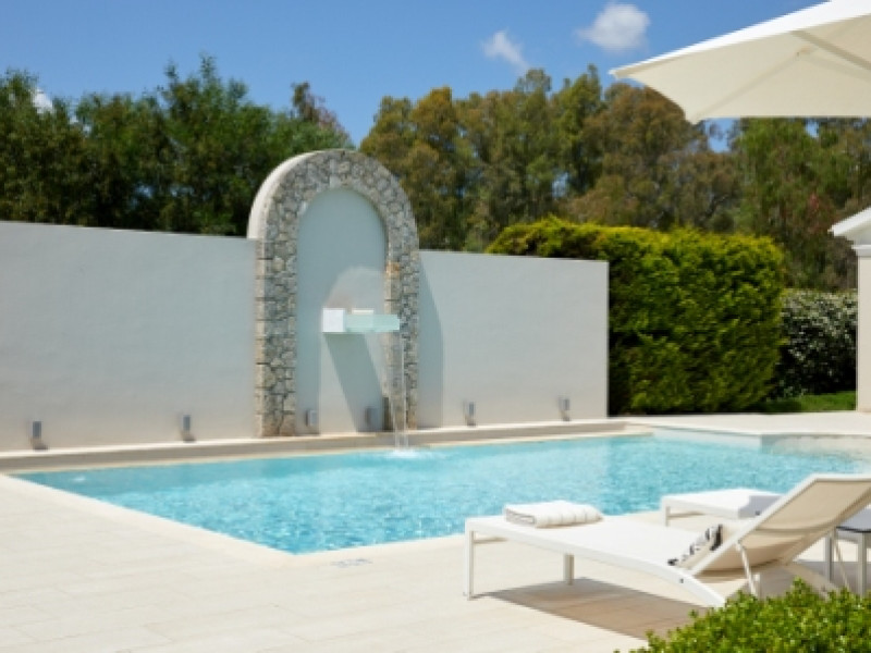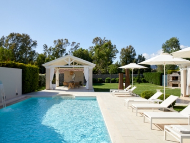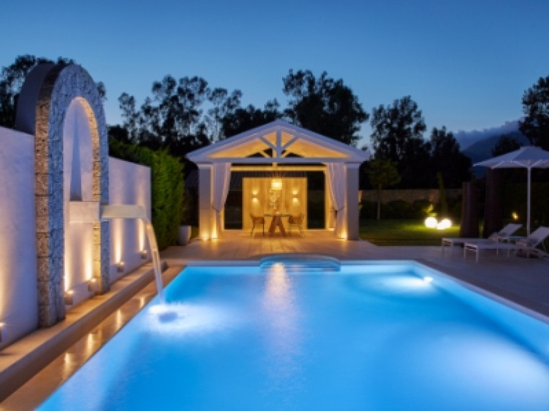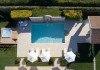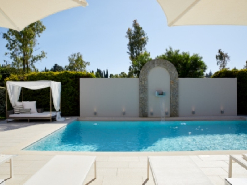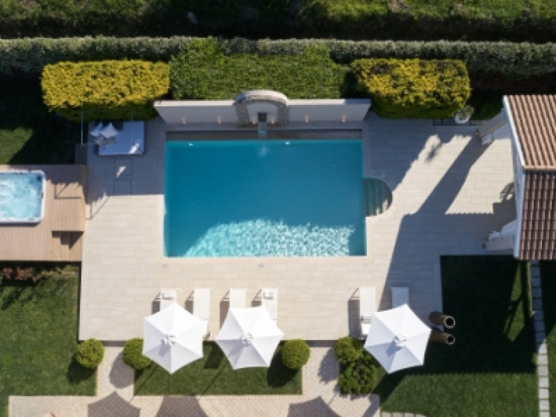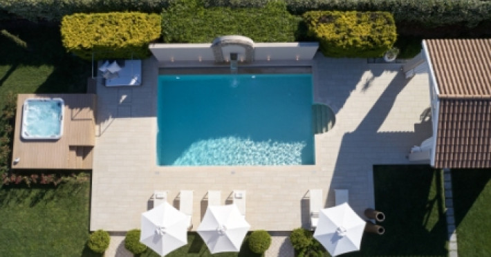 sitting area opens onto the outdoor terrace, the garden and the private pool and outdoor heating jacuzzi.