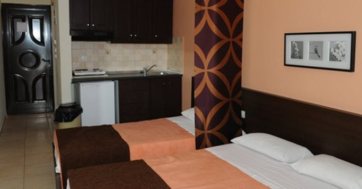 Studiourile au in dotare: grup sanitar propriu, feon, chicineta, frigider, TV, telefon, aer conditionat si balcon cu vedere spre mare sau spre munte.