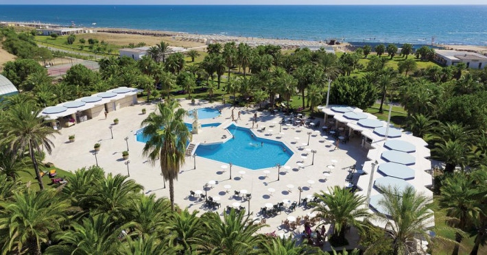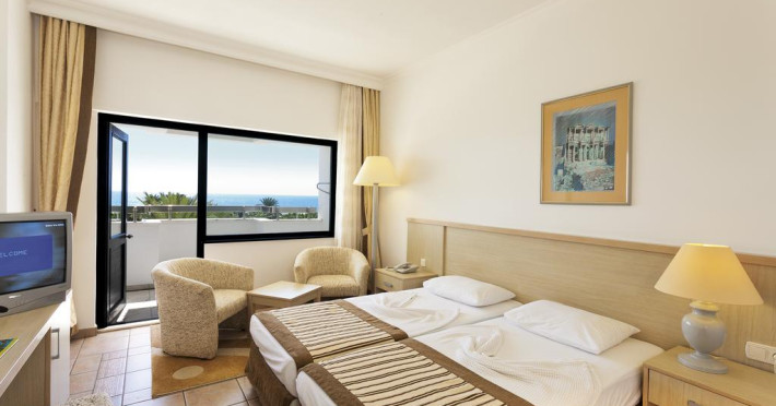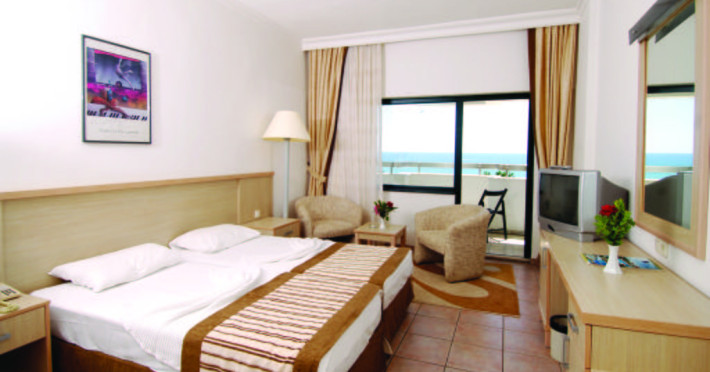 Hotelul dispune de un numar total de 343 de camere. Aceste sunt distribuite in camere standard si camere economy (fara balcon). Caracteristici camere: pardoseli laminate, mini bar, televizor, aer conditionat, baie privata, uscator de par, seif digital de inchiriat, telefon, balcon. Camerele au vedere gradina sau vedere mare.