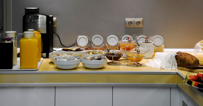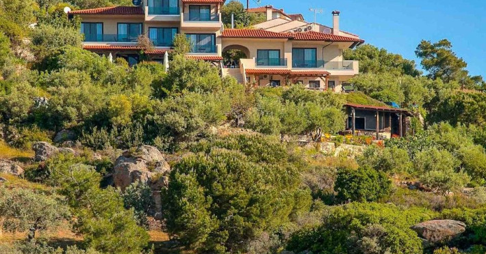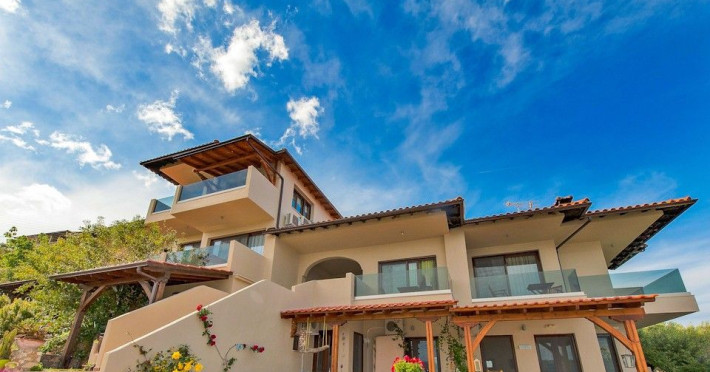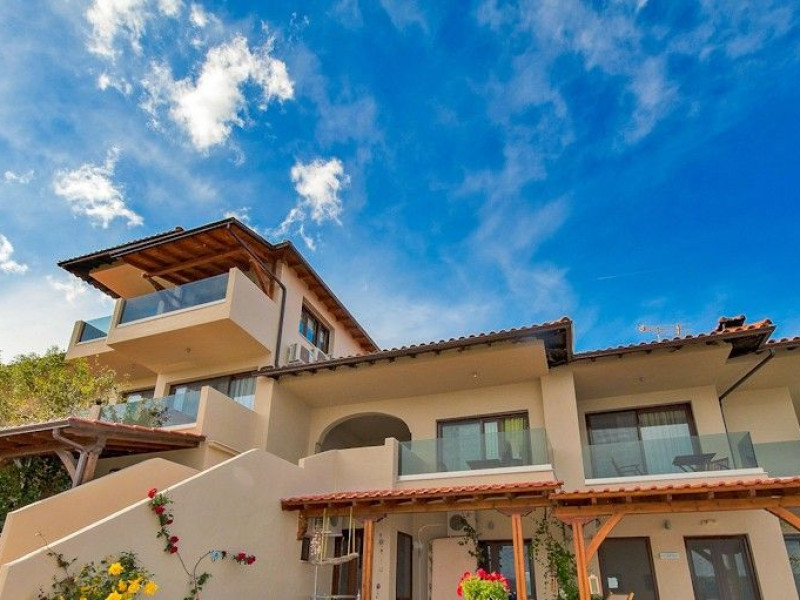 Hotel Thalassokipos has been recently renovated with style and modern amenities in mind. All rooms are doubles and an extra bed can be provided if requested.They are equipped with a kitchen, refrigerator and all the necessary cooking utensils. They also have air conditioning (A/C), central heating, telephone, satellite TV and bathrooms with shower and hairdryer.The rooms, all with a panoramic view of the sea and the area’s breathtaking scenery, have balconies or direct access to the garden. The surrounding area has landscaped gardens on several levels with grass, flowers, fruit trees, olive trees and grapevines.Bed linen is changed and rooms are cleaned every three days. You will be impressed with your first sight of the scattered islets in Vourvourou Gulf, located very close (300m.) to the shoreline, as well as the uniqueness of the surrounding area, a combination of sea and mountains.Hotel Thalassokipos is a family-run business located on the Sithonia peninsula in Vourvourou’s Mega Tichos region. It is amphitheatrically built on the side of a small hill and offers panoramic views of one of the most picturesque parts of Halkidiki.At the edge of the hotel’s grounds, 80 metres away, there is a small, sandy and secluded beach, whilst the area’s other beaches are located nearby (Karidi, Fava, Latoura, Livrochio etc).The hotel also has a cafe bar where you can enjoy your coffee or drink, as well as a variety of pizzas, pies and other snacks. The hotel’s facilities include a 24-hour reception desk, wireless Internet access (Wi-Fi) and a covered private parking area.In the Vourvourou area, you can also find supermarkets, restaurants, a bus stop, beach bars, car and boat rentals and Greek and International press. In Agios Nikolaos (10km), there is a health centre, a pharmacy, a police station, ATMs, etc, while in Ormos Panagias (4km) there is a port offering daily cruise services to Mount Athos.Hotel Thalassokipos can combine an enchanting environment with tranquility and relaxation, but also provides easy access to entertainment.