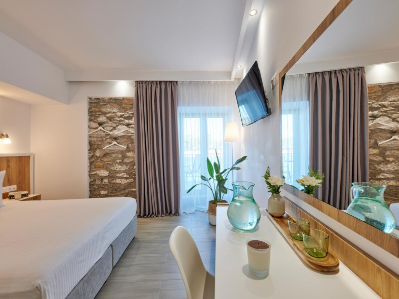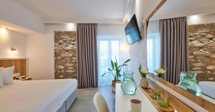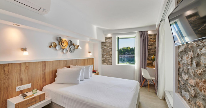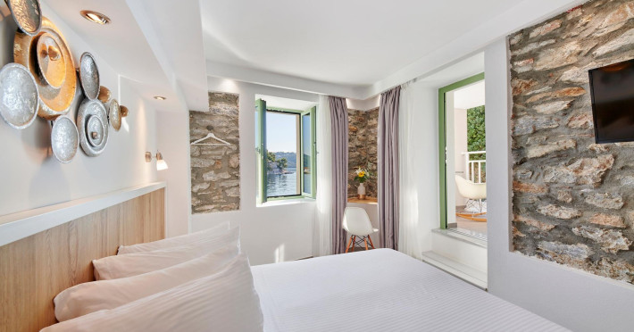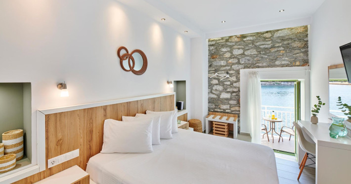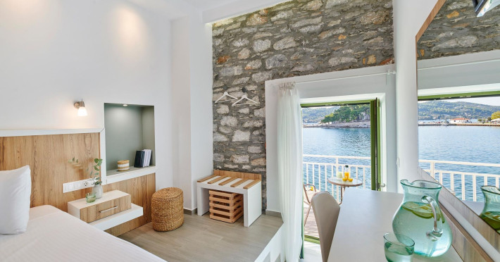 Ideally located at the end of the old port in Skiathos town, The Water is a fully renovated property with 8 rooms. At the heart of the island with many choices for entertainment and dinner, the Water is a great choice both for families and groups of friends. Its proximity to the sea, the museum and the rest of the attractions of Skiathos make it a wonderful option for your holidays.