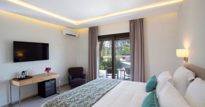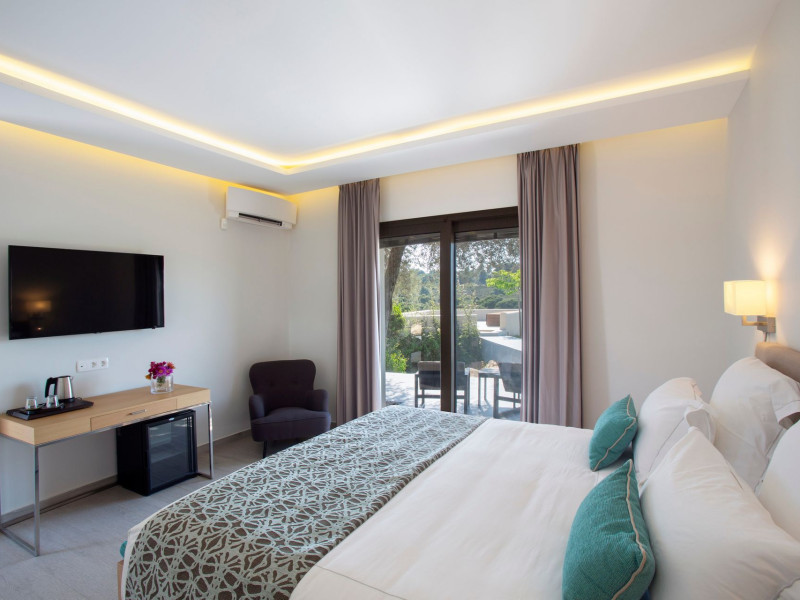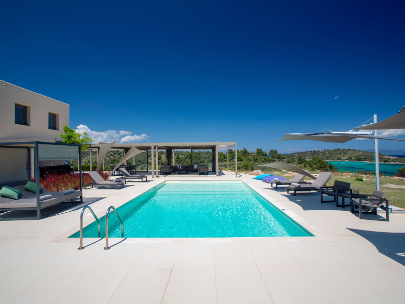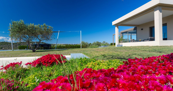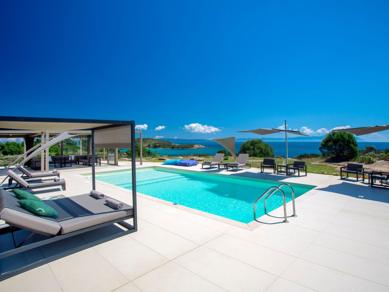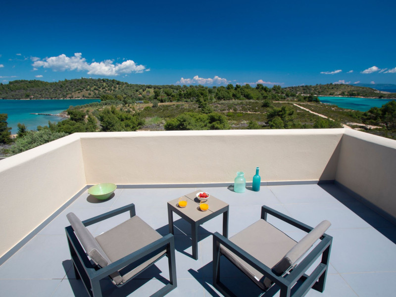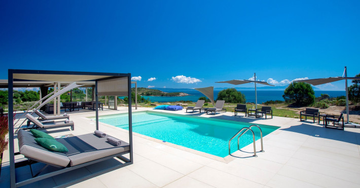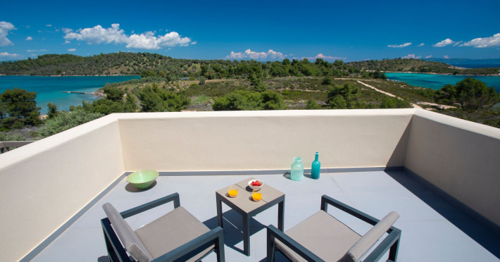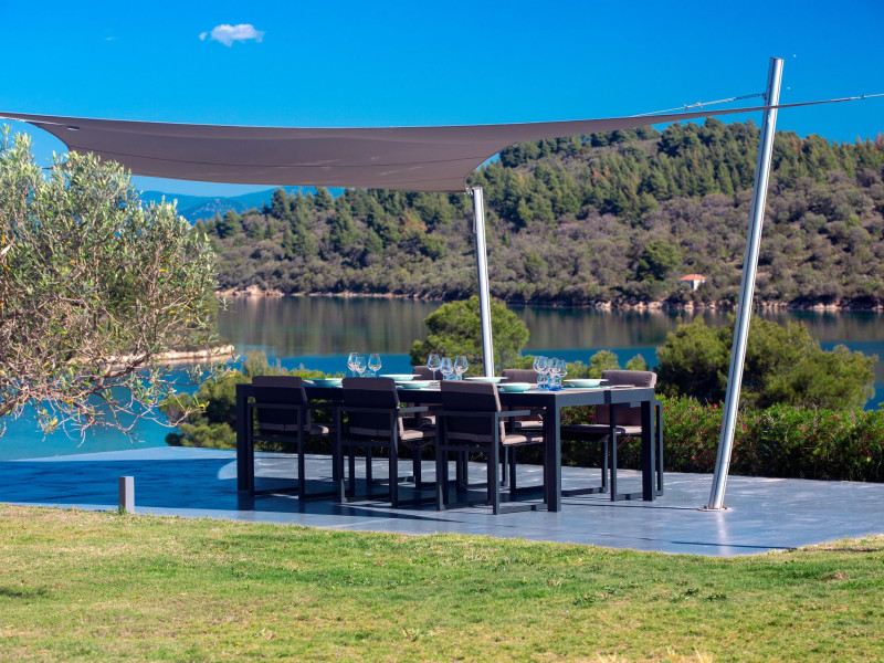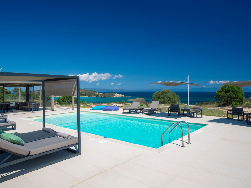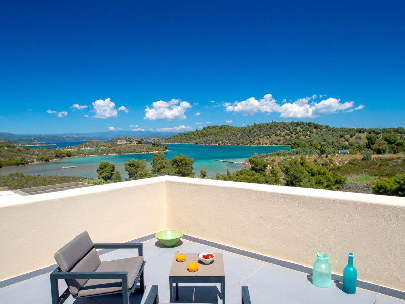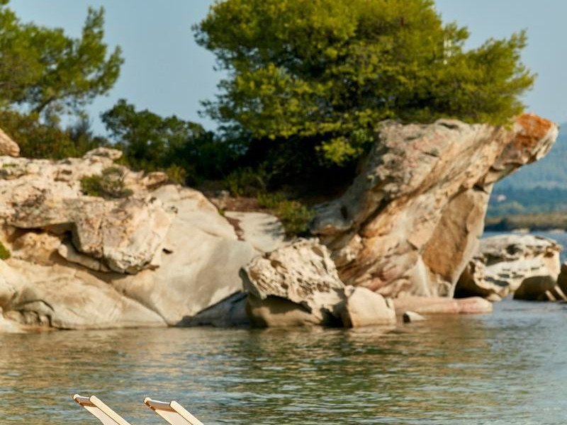 The Villas are located in a new secret eco-paradise on the second of the three peninsulas of Halkidiki, in Greece, in the North Aegean Sea. Diaporos Island is opposite Vourvourou and only 10 km from the municipality of Agios Nikolaos in Sithonia. The area covers 3,2 square kilometers with a big natural bay, which is 700 meters long and serves as a mooring spot for the boats. The bay ends in shallow watres that always remain warm and are therefore suitable for swimmers. Most of the island is covered by pie forest, which makes it a unique combination of perfect coast lines and pure nature.