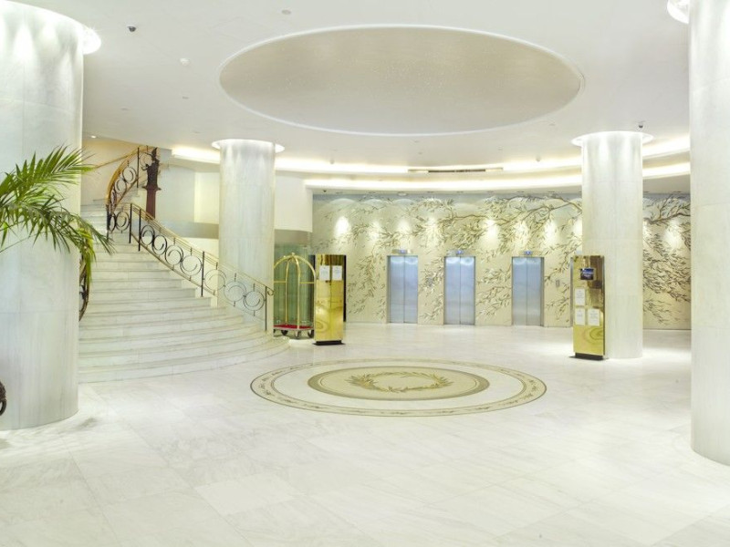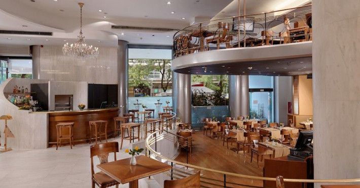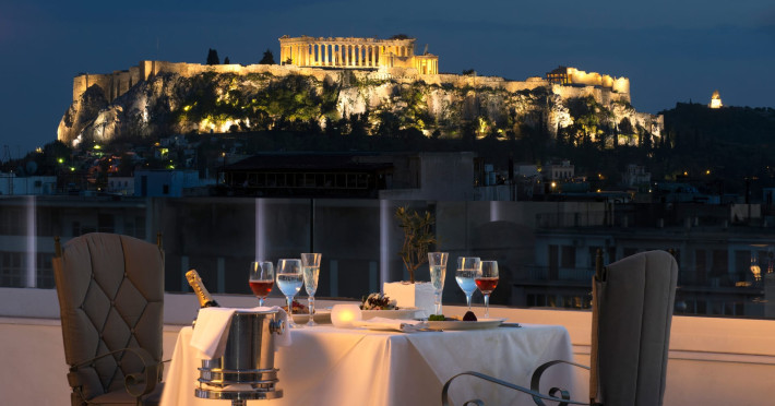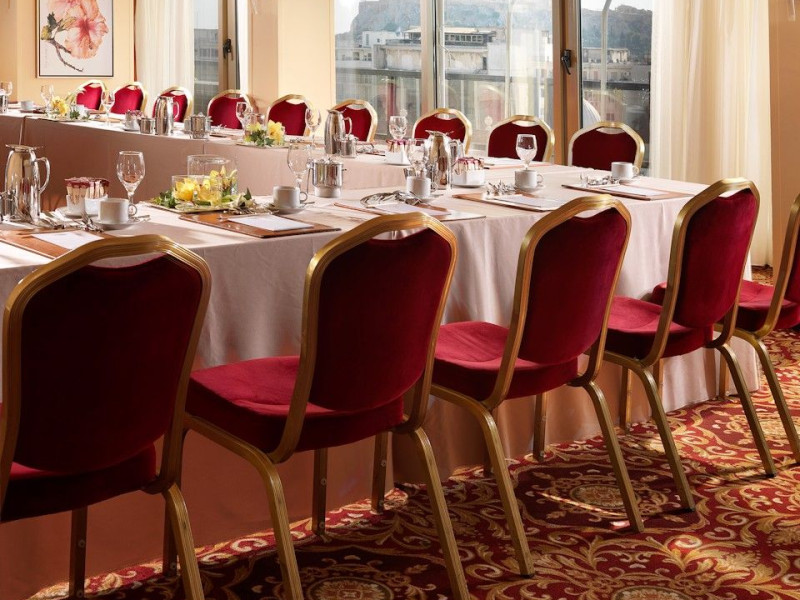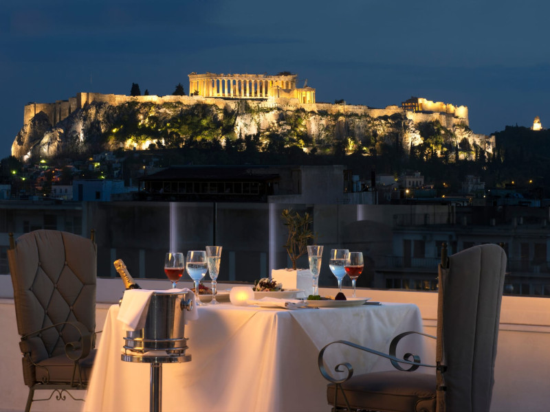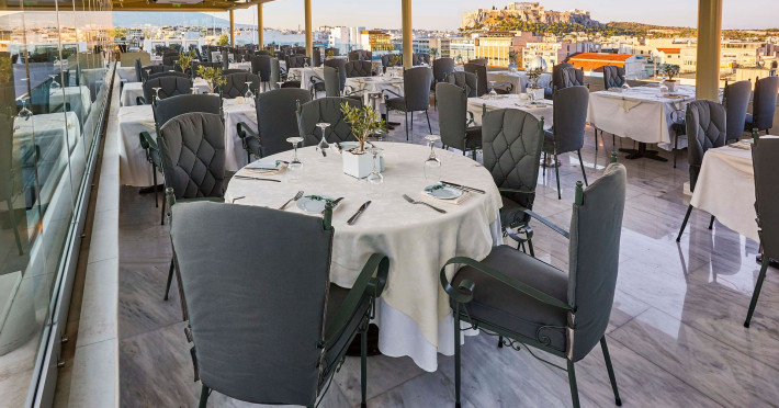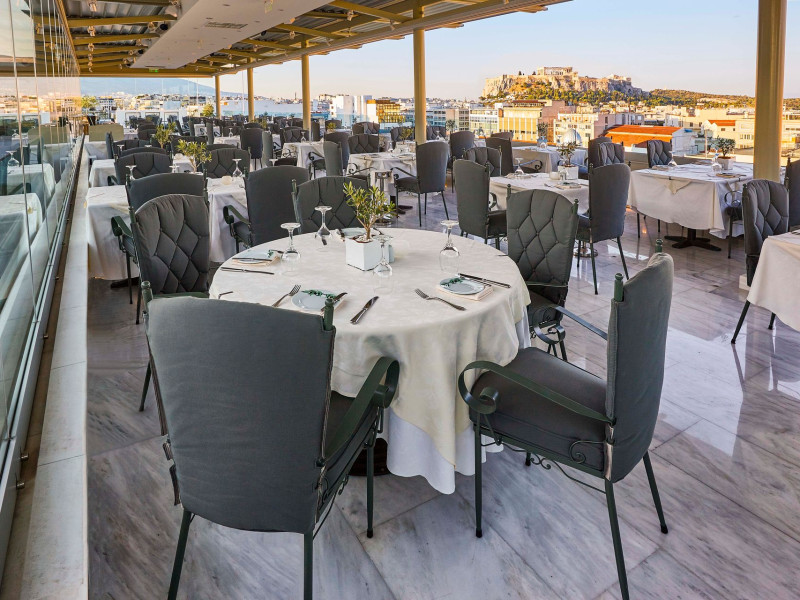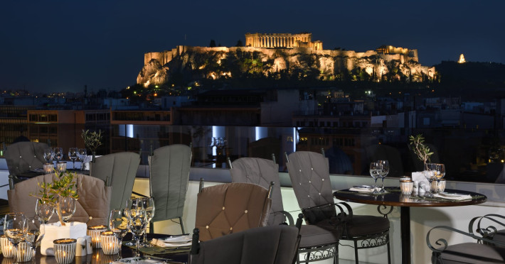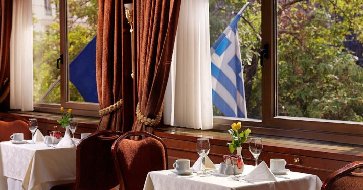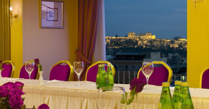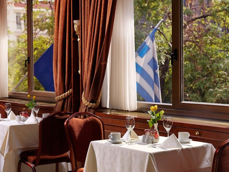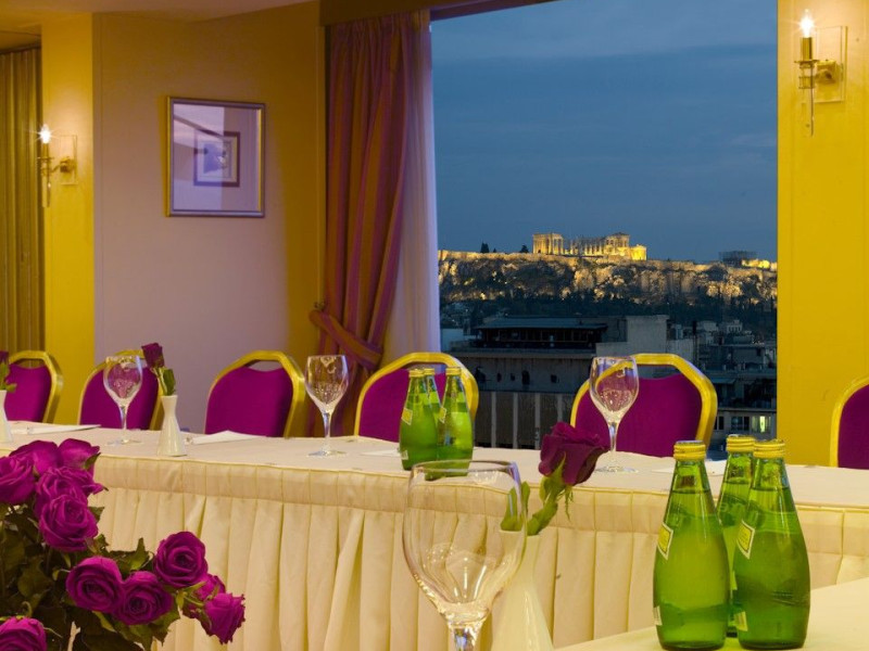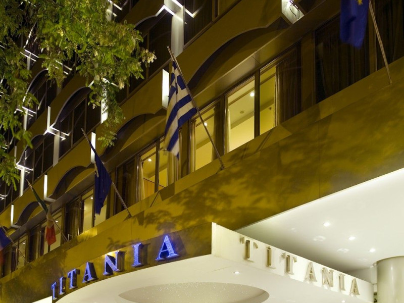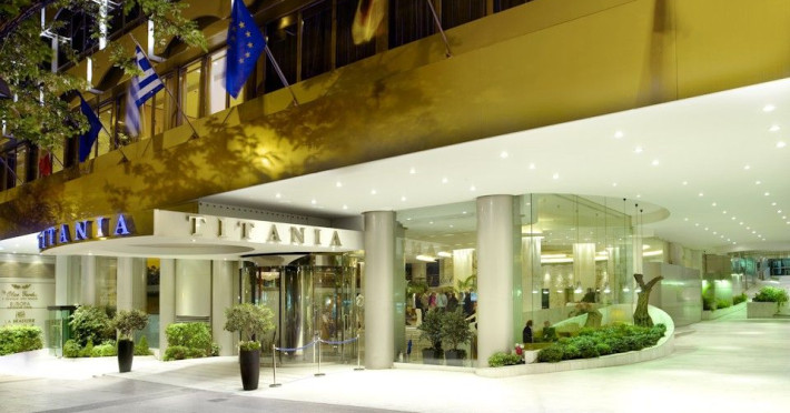 Located at Panepistimiou Avenue, near Syntagma square, right in the heart of the Historical and Commercial Centre of Athens, the recently renovated TITANIA Hotel creates its own “page” in the history of Hospitality. The TITANIA Athens hotel is surrounded by the most important monuments of the Grecian History, such as the Acropolis, the New Museum of Acropolis, the Parliament, the Archaeological Museum, and the National Library. It is located within short distance to theaters, modern commercial shops and city malls, offering its guests a wide variety of sightseeing and entertainment choices. The impressive lobby area, decorated with the famous "Pentelikon" marble and exquisite inlaid mosaics with themes from the Ancient Greek history, the impressive “La Brasserie” restaurant, as well as the Hotel’s Awarded Gourmet Roof Garden Restaurant “Olive Garden”, constitute Titania a unique Athens Hotel which guarantees its guests an unforgettable stay.Titania Hotel in Athens also features gym underground garage space for 168 cars, operating 24 hours a day, 7 days a week (entrance at Feidiou Street).