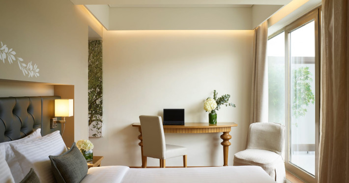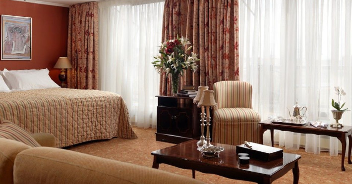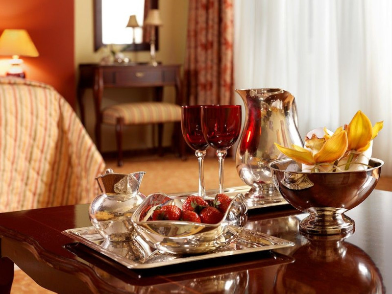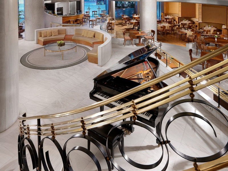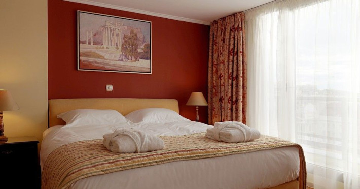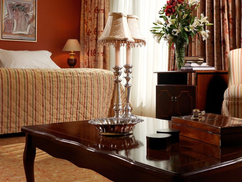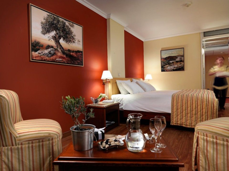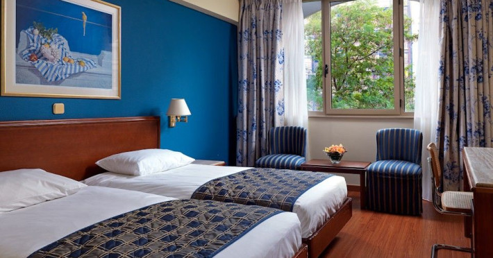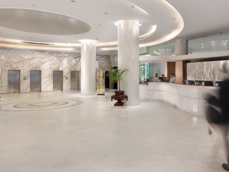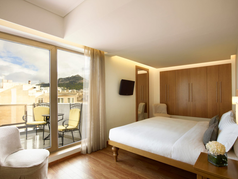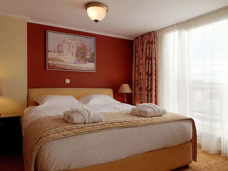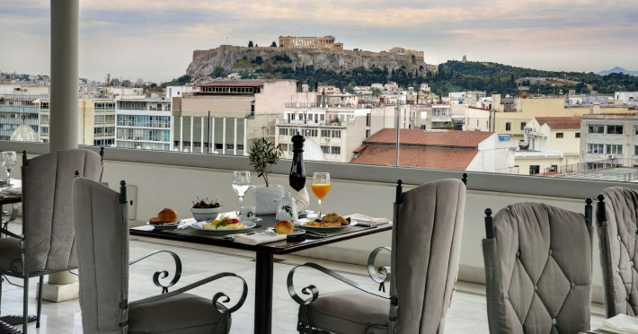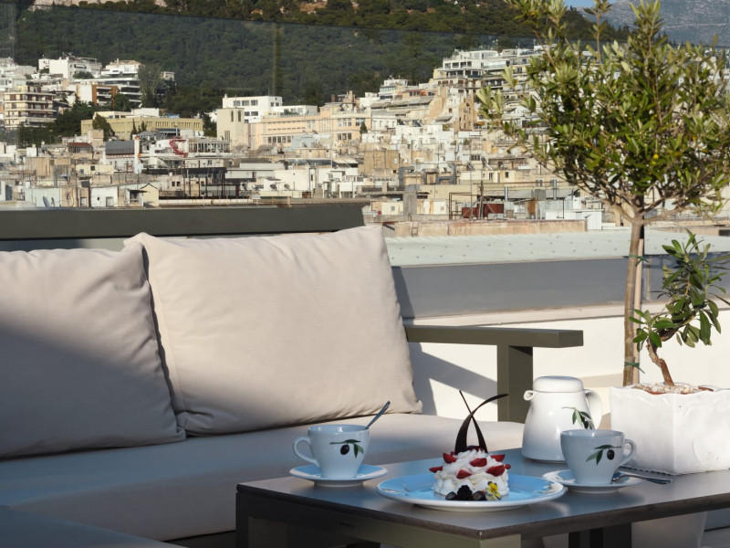 Located at Panepistimiou Avenue, near Syntagma square, right in the heart of the Historical and Commercial Centre of Athens, the recently renovated TITANIA Hotel creates its own “page” in the history of Hospitality. The TITANIA Athens hotel is surrounded by the most important monuments of the Grecian History, such as the Acropolis, the New Museum of Acropolis, the Parliament, the Archaeological Museum, and the National Library. It is located within short distance to theaters, modern commercial shops and city malls, offering its guests a wide variety of sightseeing and entertainment choices. The impressive lobby area, decorated with the famous "Pentelikon" marble and exquisite inlaid mosaics with themes from the Ancient Greek history, the impressive “La Brasserie” restaurant, as well as the Hotel’s Awarded Gourmet Roof Garden Restaurant “Olive Garden”, constitute Titania a unique Athens Hotel which guarantees its guests an unforgettable stay.Titania Hotel in Athens also features gym underground garage space for 168 cars, operating 24 hours a day, 7 days a week (entrance at Feidiou Street).