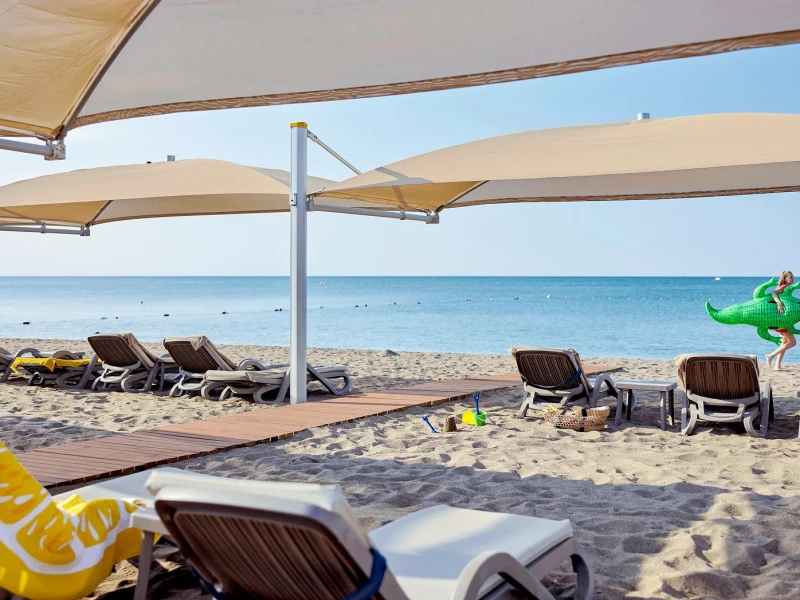 TUI Magic Life Belek se află chiar lângă malul mării şi are o zonă de plajă privată, facilități spa şi piscine în aer liber, cu tobogane de apă.