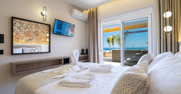 Venezia Luxury Living is a luxurious complex consisting of 3 independent villas created by the love of a small family. Owners appreciating the blessings of the area in terms of location and visual aesthetics, put their passion into creating a unique hospitality experience based on the need for privacy and serenity. They combine Faliraki hill with sea view to give the visitor the ultimate feeling of relaxation and carefree. Privacy meets total service, as many additional amenities are served by the reception and facilities of Venezia Resort.