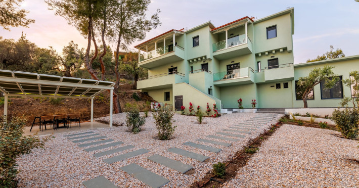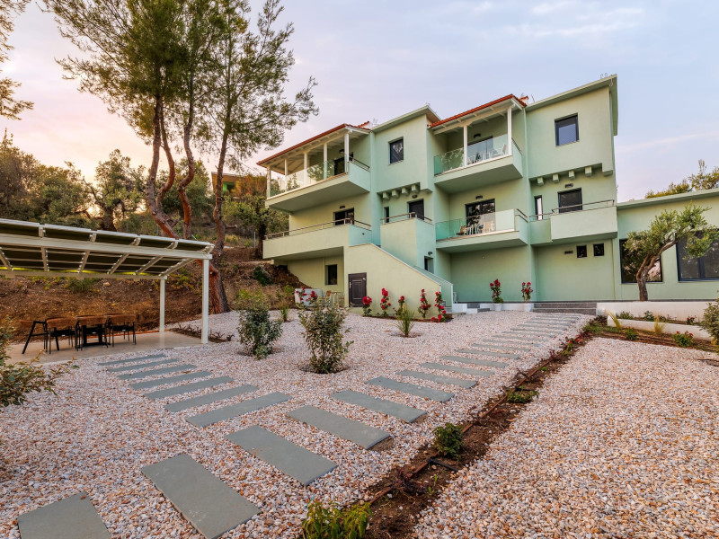 Villa Kelyfos: Contemporary Luxury in the Heart of NatureWelcome to Villa Kelyfos, a captivating retreat nestled amidst the enchanting beauty of Tripotamos, Sithonia. Combining sleek, modern luxury with a serene natural setting, our villa provides an idyllic escape for those seeking tranquility, style, and a deep connection with the Mediterranean landscape.Highlights?? Group Trip Excellence: Spacious, stylishly designed areas perfect for large groups and family gatherings.?? Nature-Infused Serenity: An exquisite location in Tripotamos, offering seclusion and a peaceful retreat from the world.? Contemporary Elegance: A luxury villa that masterfully combines modern design with the raw beauty of the Sithonian coast.Refined Living & Group SanctuaryVilla Kelyfos is the perfect stylish base for group trips and shared memories:Designed for Groups: Featuring spacious interiors and high-end furnishings, the villa is curated to meet the needs of families or groups of friends seeking a comfortable and luxurious shared stay.Chic Contemporary Interiors: Every aspect of the villa’s design highlights a blend of modern elegance and functional comfort, ensuring a premium holiday experience.A Tranquil Natural HavenLocated in the lush area of Tripotamos, the villa offers a unique sensory experience:Surrounded by Greenery: Set against a backdrop of vibrant Mediterranean vegetation, Villa Kelyfos guarantees absolute privacy and a peaceful atmosphere.Vistas of Crystal Waters: Gaze upon the sparkling blue sea from your private terrace, where the serene surroundings create the ultimate environment for relaxation and soul rejuvenation.Frequently asked questionsQ: Is Villa Kelyfos suitable for large groups or family trips?A: Absolutely. Villa Kelyfos is a stylish and spacious retreat specifically designed to accommodate group trips, providing ample room and luxury for families or friends traveling together.Q: Where is the villa located and what is the surrounding environment like?A: We are nestled in the enchanting area of Tripotamos in Sithonia. The villa is set against a backdrop of lush greenery, offering a serene and private setting in the heart of nature, away from the noise of crowded resorts.Q: Does the villa offer sea views?A: Yes, the property overlooks the crystal-clear waters of the surrounding landscape, offering captivating views that blend the blue of the Aegean with the green of the Sithonian forests.Q: What is the architectural style of Villa Kelyfos?A: The villa combines contemporary luxury with simple, elegant lines. It is designed to offer an idyllic retreat where modern comfort meets a tranquil, natural setting.Q: Is the location convenient for exploring nearby towns like Neos Marmaras?A: Definitely. While you enjoy total tranquility in Tripotamos, you are just a short drive away from the vibrant town of Neos Marmaras, where you can find restaurants, shops, and various seaside activities.