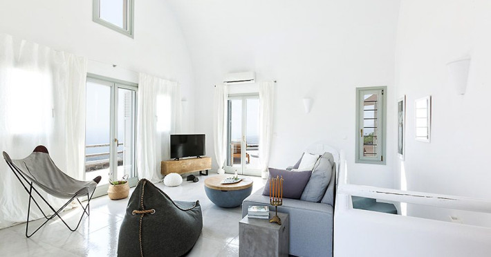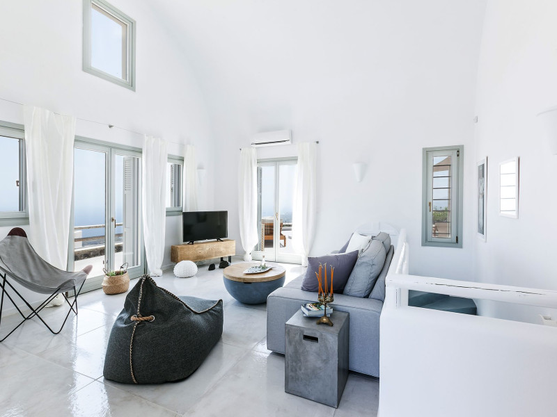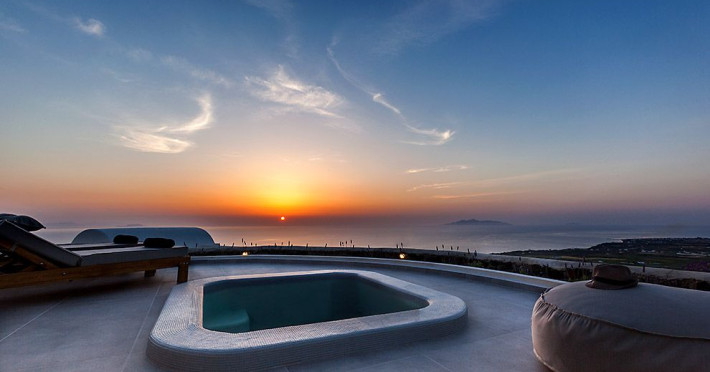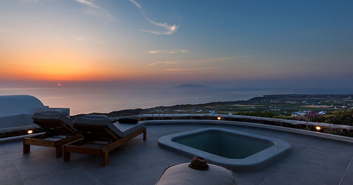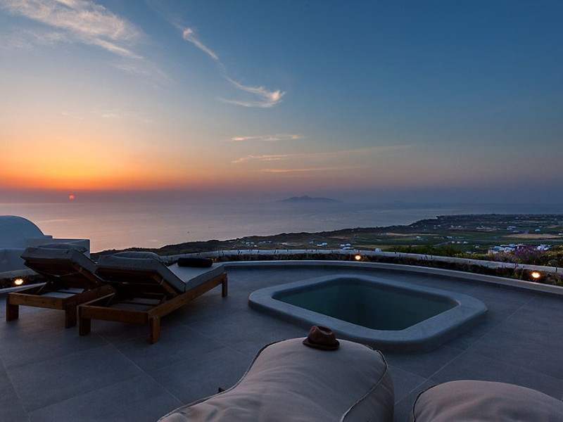 Stunning Villa Vinea overlooks the Aegean Sea, offers unforgettable sunrises and is located in the peaceful village of Imerovigli which lies between the busy town of Fira (2km) and Oia (9,5km).