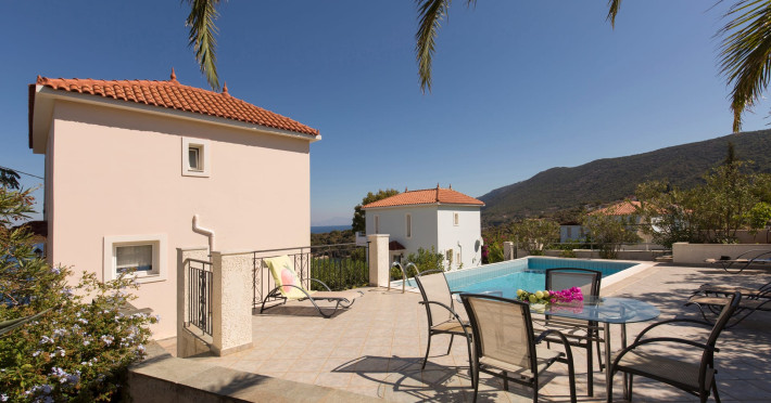 Wonderful seaside villas in Agia Paraskevi bay, 8km from Samos town. Tastefully furnished with two bedrooms, two bathrooms and a fully equipped kitchen the villas are ideal for couples, families or group of friends. Leading from the living room is a spacious balcony with stunning sea views, furnished with a table and chairs to enable you to dine al fresco and enjoy the panoramic sea view. Quiet and peaceful, yet only twenty minutes from the island's capital.
