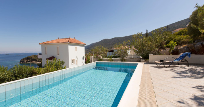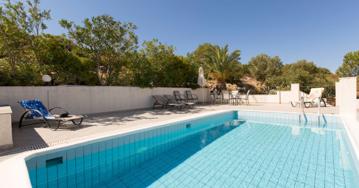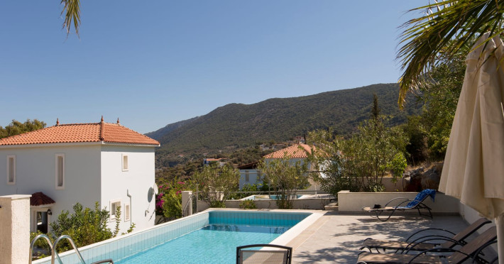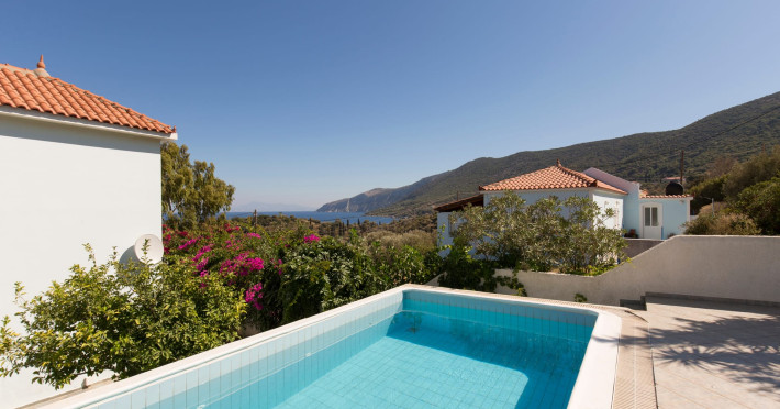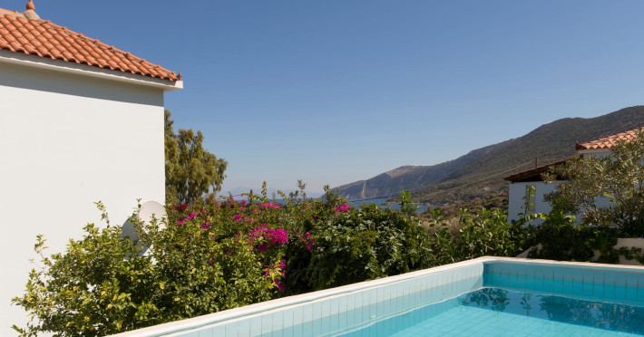 The villas benefit from a private eco-pool and are located just four minutes walk from the beach of Agia Paraskevi, where you will find a nice Greek tavern. If you want to explore the island or go shopping a car is recommended. Each villa has a private parking.