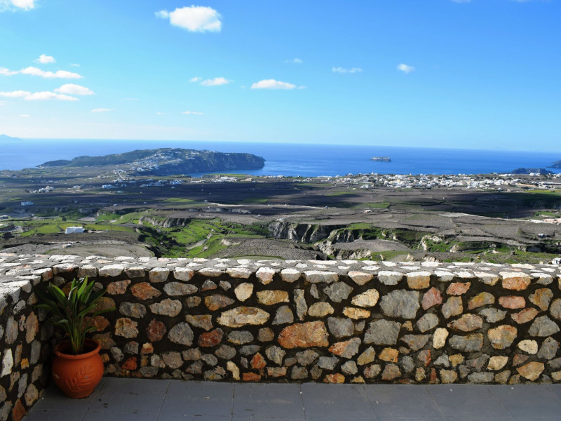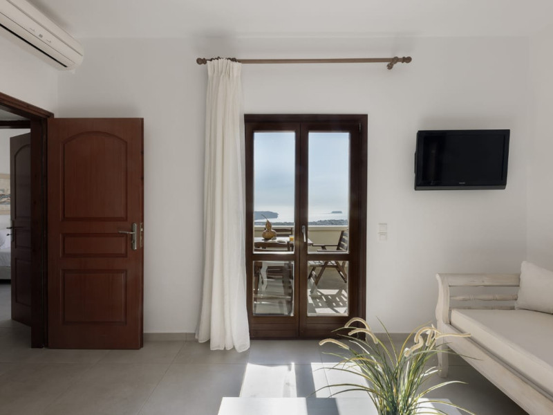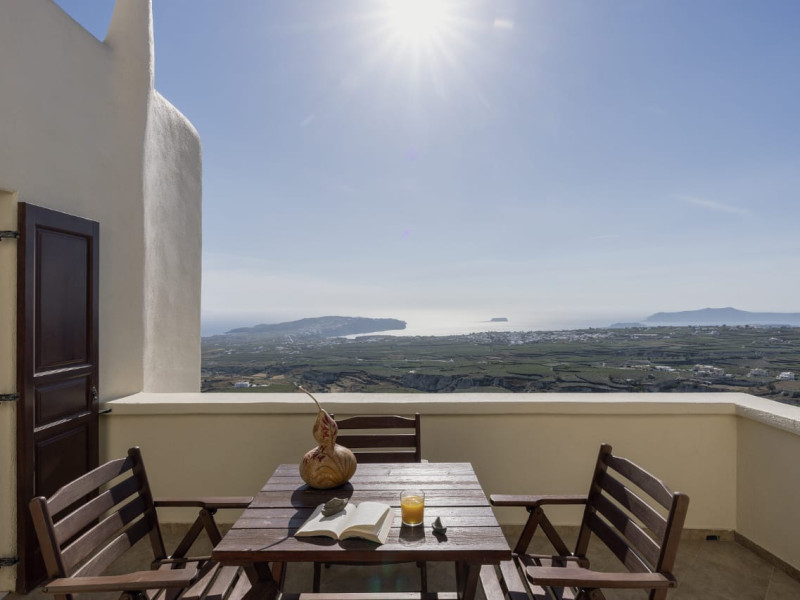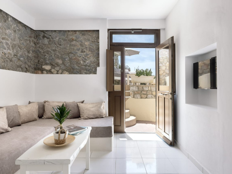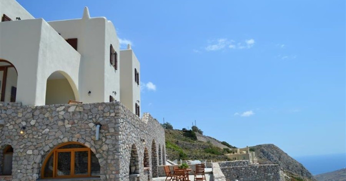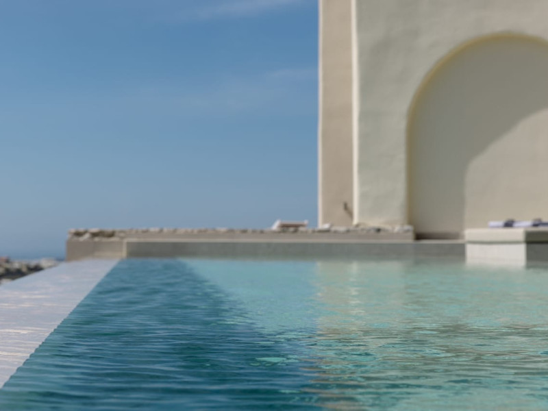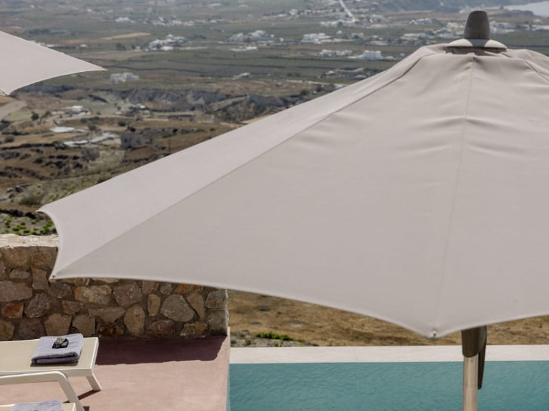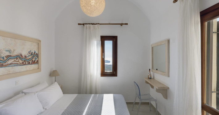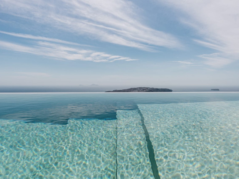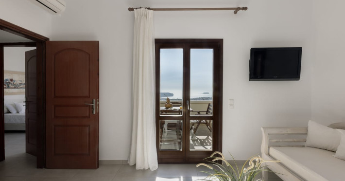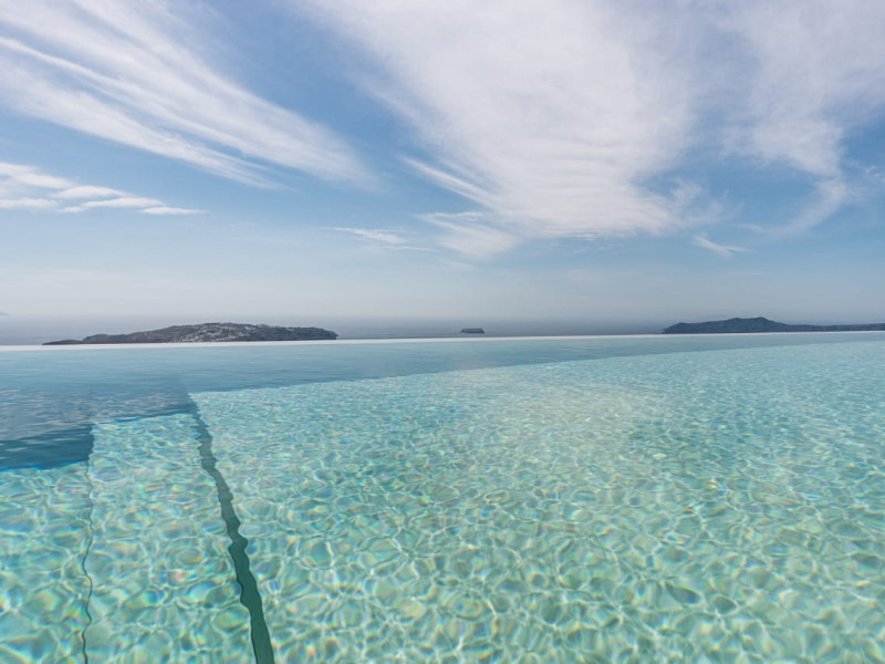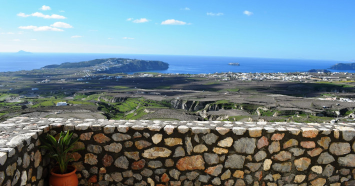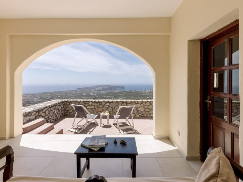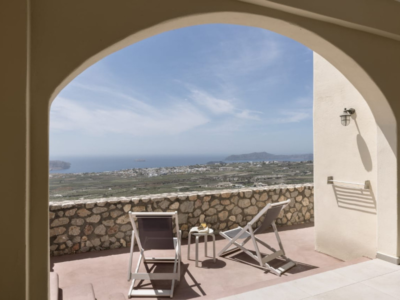 Zatrikion is located on the outskirts of Pyrgos village towards the monastery of Prophitis Ilias, on a very privileged spot, with a sensational view of Santorini Island and the Aegean Sea. Spacious & elegantly decorated with fully equipped kitchen, lounge area and bedrooms each villa has its own unique decoration. Four out of seven of Villas are equipped with a private outdoor heated Jacuzzi & can accommodate families, couples or friends. From the terrace & main pool the view onto the vineyards and the Aegean is breathtaking.