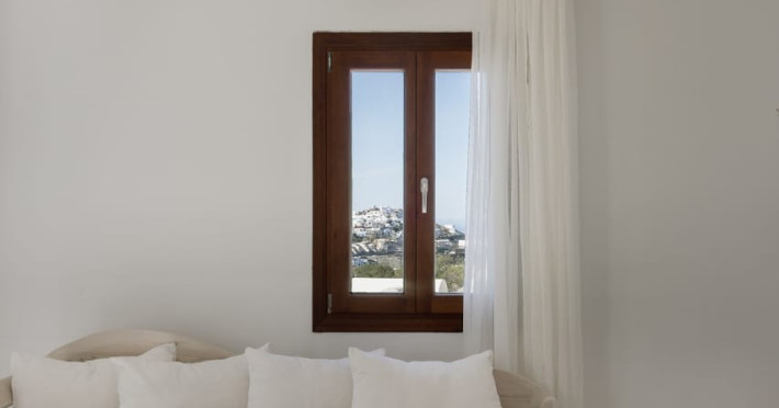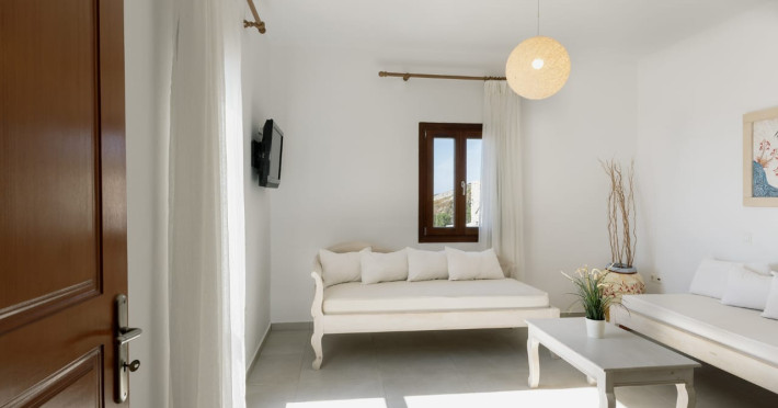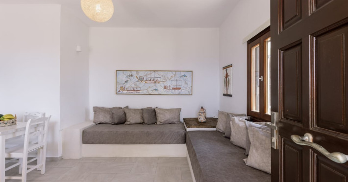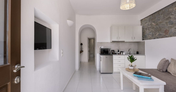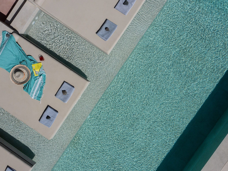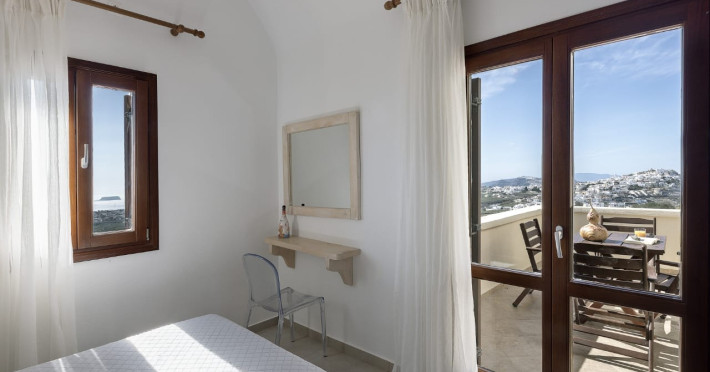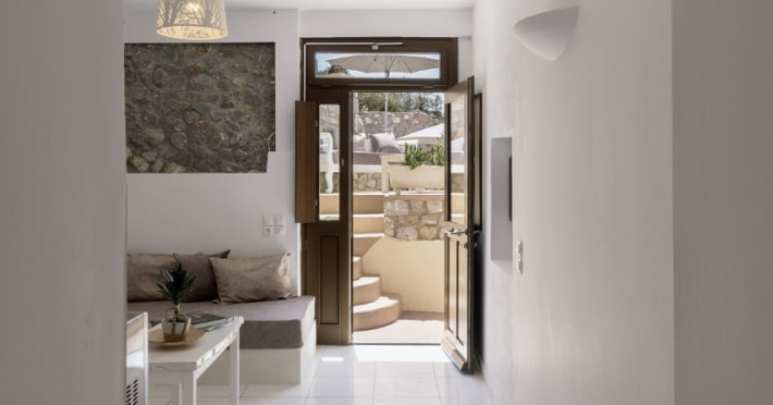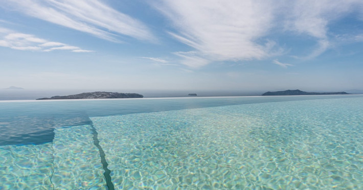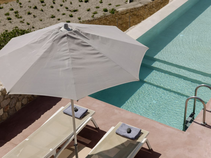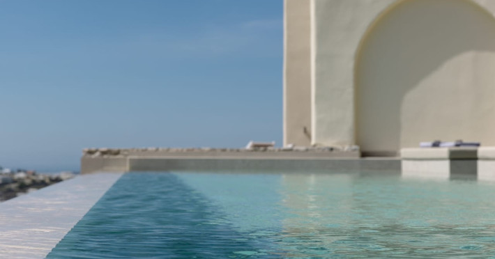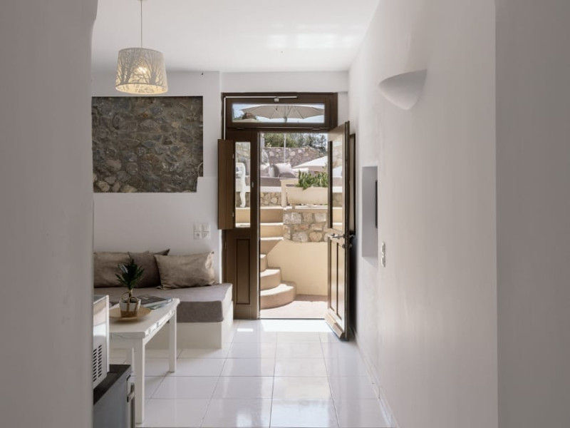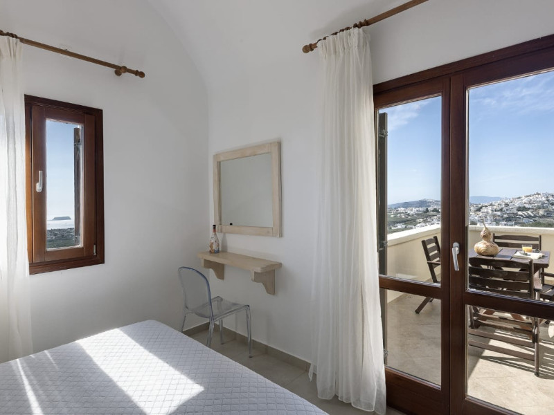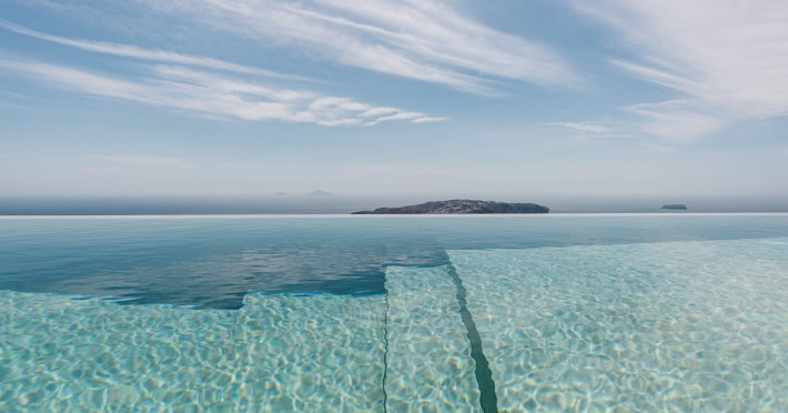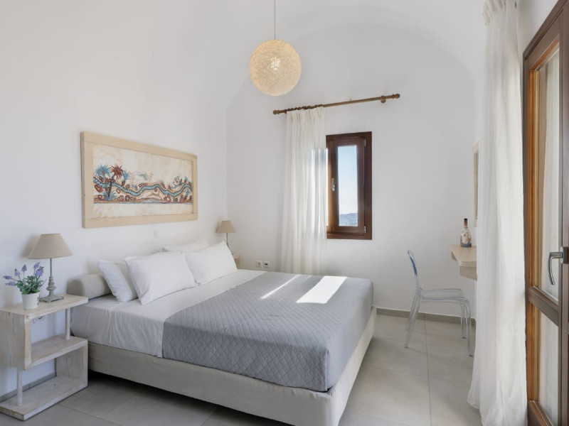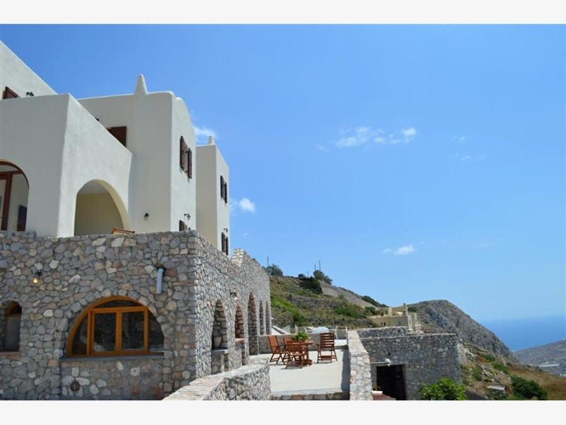 Zatrikion is located on the outskirts of Pyrgos village towards the monastery of Prophitis Ilias, on a very privileged spot, with a sensational view of Santorini Island and the Aegean Sea. Spacious & elegantly decorated with fully equipped kitchen, lounge area and bedrooms each villa has its own unique decoration. Four out of seven of Villas are equipped with a private outdoor heated Jacuzzi & can accommodate families, couples or friends. From the terrace & main pool the view onto the vineyards and the Aegean is breathtaking.