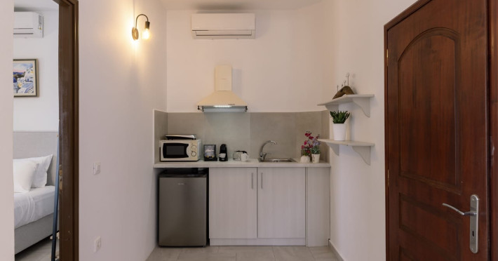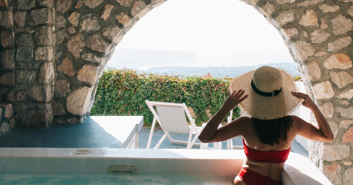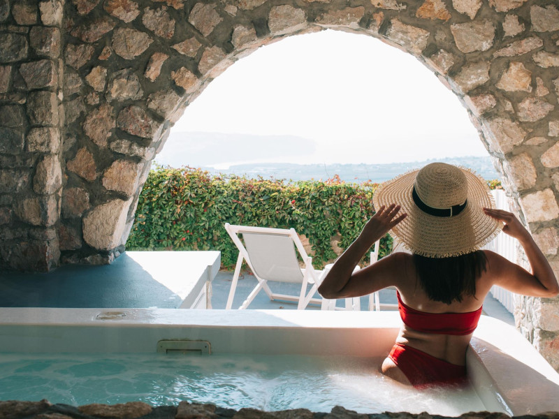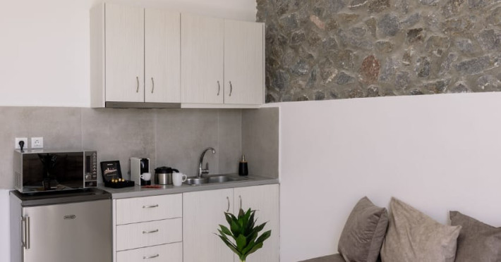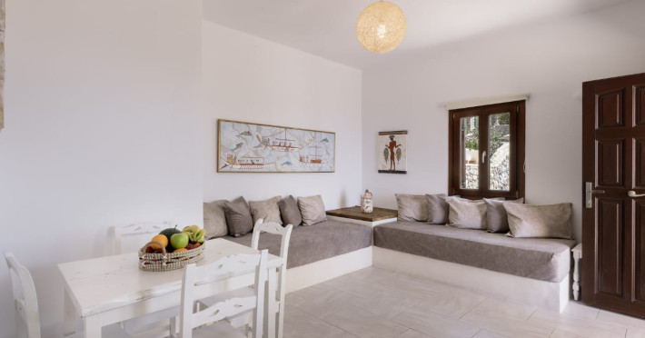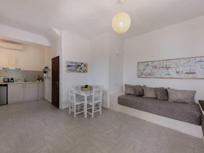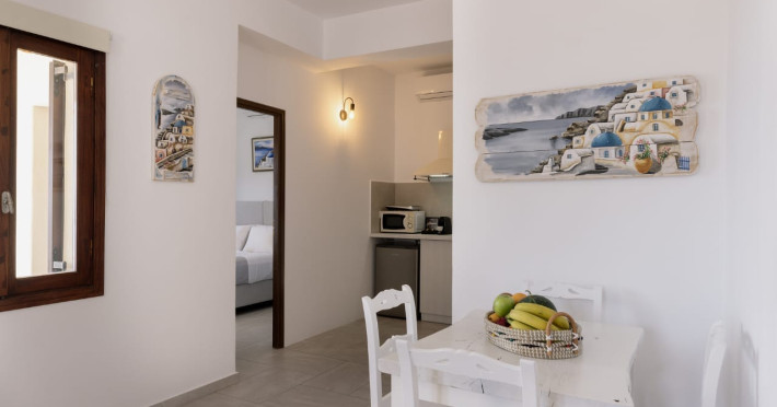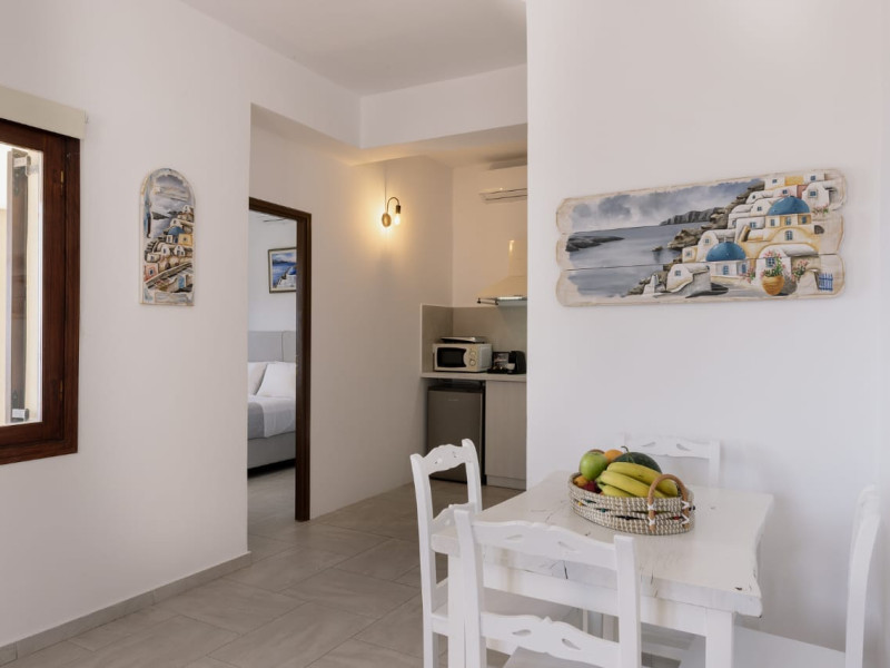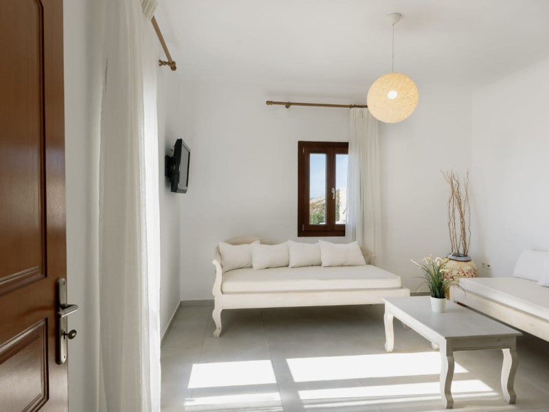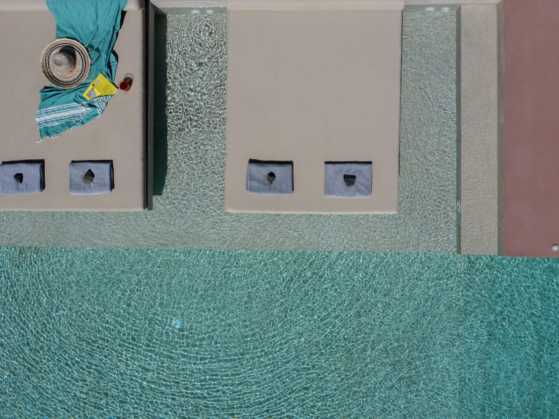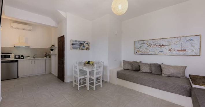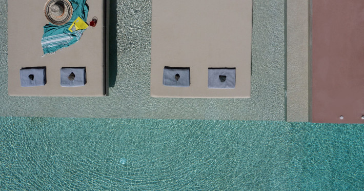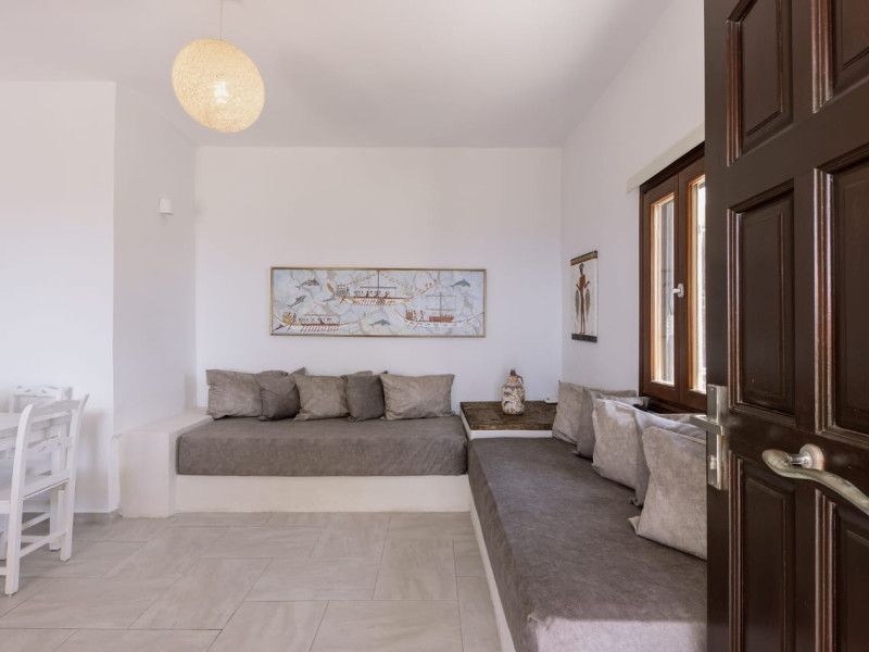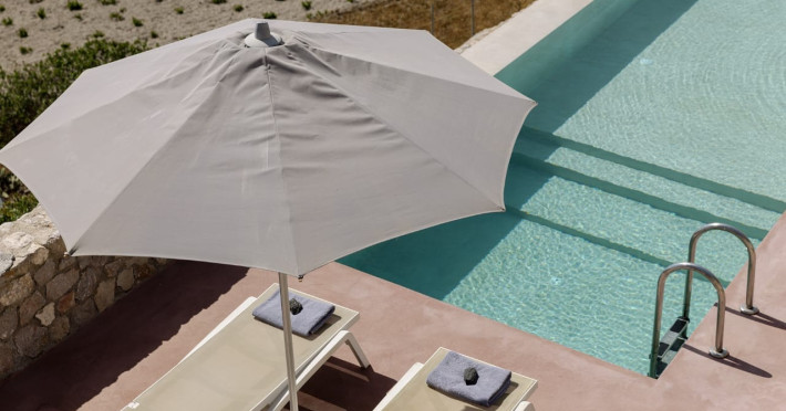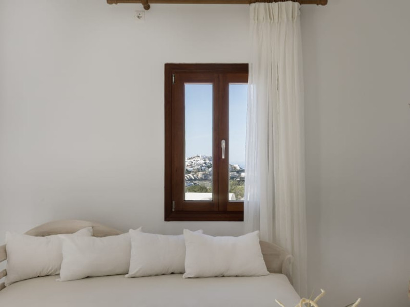 Zatrikion is located on the outskirts of Pyrgos village towards the monastery of Prophitis Ilias, on a very privileged spot, with a sensational view of Santorini Island and the Aegean Sea. Spacious & elegantly decorated with fully equipped kitchen, lounge area and bedrooms each villa has its own unique decoration. Four out of seven of Villas are equipped with a private outdoor heated Jacuzzi & can accommodate families, couples or friends. From the terrace & main pool the view onto the vineyards and the Aegean is breathtaking.