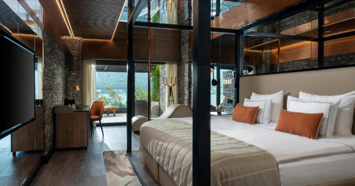 Hotelul Lujo Bodrum este situat in Guvercinlik, la 26 km de Bodrum, și oferă cazare de lux cu 3 plaje private, 4 piscine diferite in aer liber și un centru spa. Oaspeții au la dispoziție un parc acvatic, un restaurant și un bar. Hotelul oferă WiFi gratuit in toată proprietatea și o parcare privată gratuită.