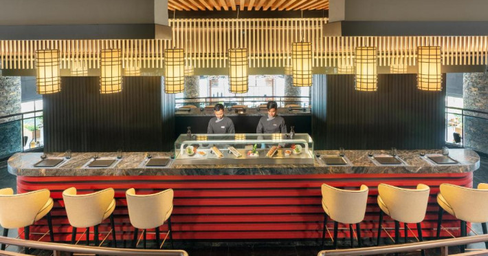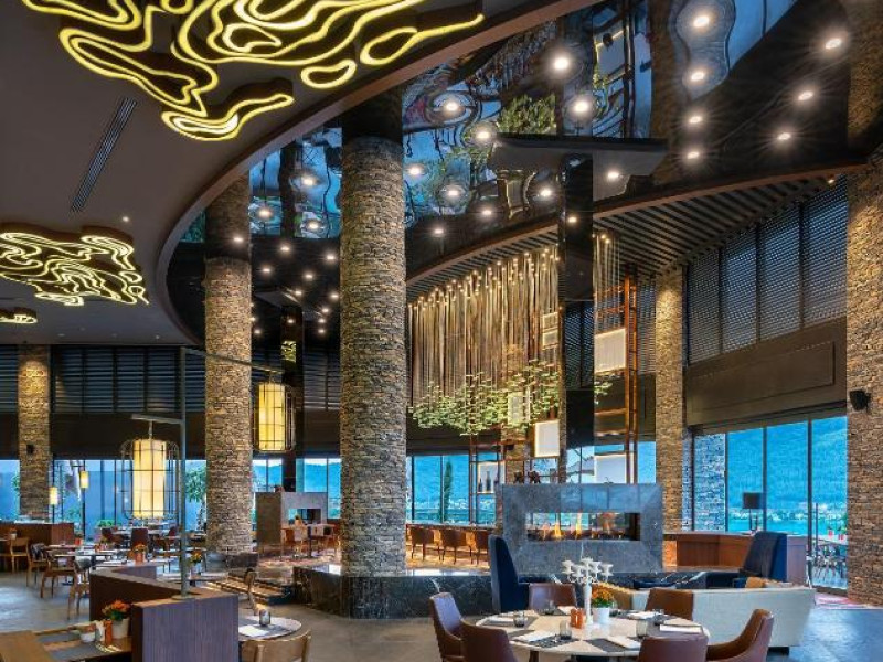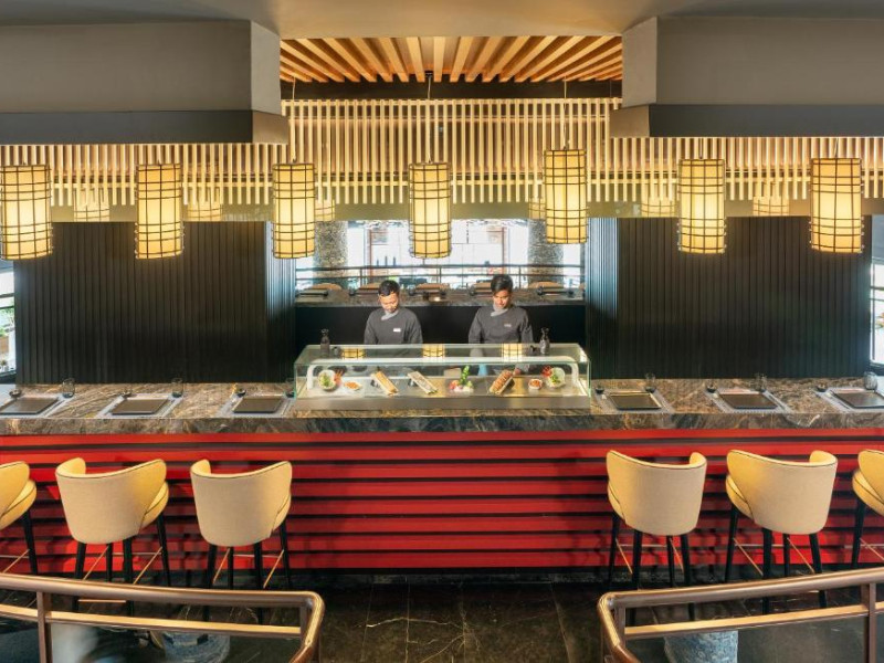 Hotelul găzduiește mai multe localuri rafinate, printre care un restaurant principal a la carte care servește seara preparate din 8 bucătării diferite și este disponibil nonstop. Oaspeții care doresc să ia masa intr-o atmosferă destinsă pot alege localul Teppanyaki, care oferă preparate delicioase pe bază de carne și fructe de mare proaspete, insoțite de diverse cocktailuri și vinuri. La barul Pablo Esco vă puteți delecta cu whisky vechi și trabucuri premium rulate manual.