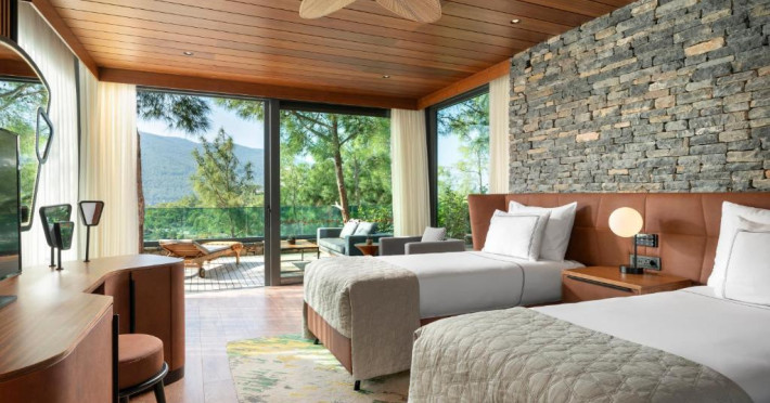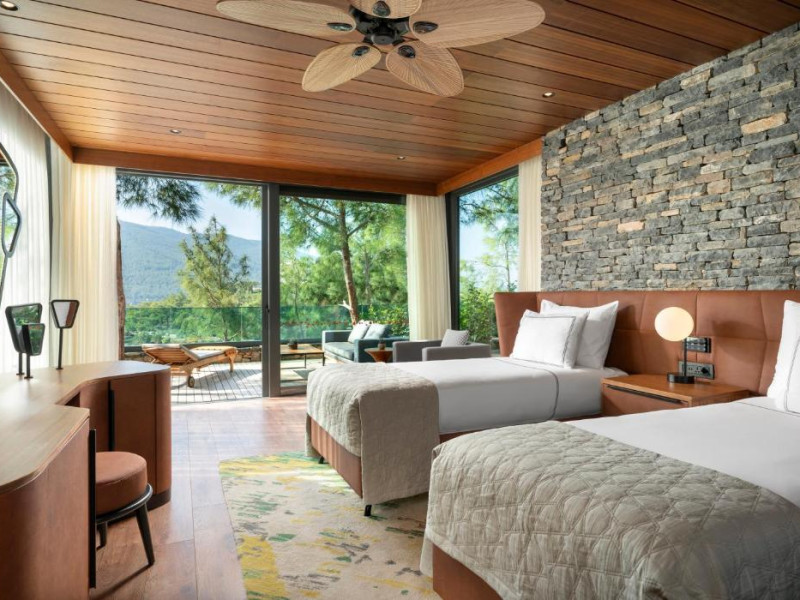 Toate camerele decorate luxos au balcon sau terasă privată. Cuibărite in cadrul unor structuri din piatră spectaculoase, vilele au piscină privată și grădină. Camerele din pădure, situate la umbra pinilor, au vedere magnifică la mare. Toate camerele acestui hotel au aer condiționat și TV cu ecran plat cu canale prin cablu. Unele unități oferă un dulap cu grătar și o zonă de relaxare unde vă puteți destinde. Toate camerele includ o baie privată. Unele camere sunt amenajate cu chiuvete duble. Facilitățile suplimentare includ halate de baie, papuci și articole de toaletă gratuite.