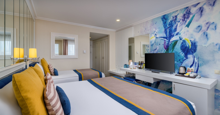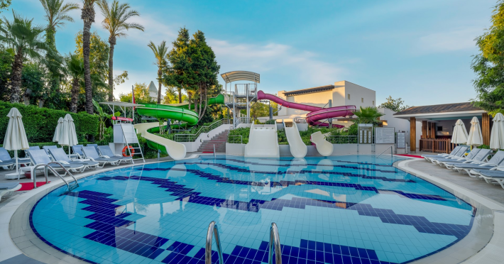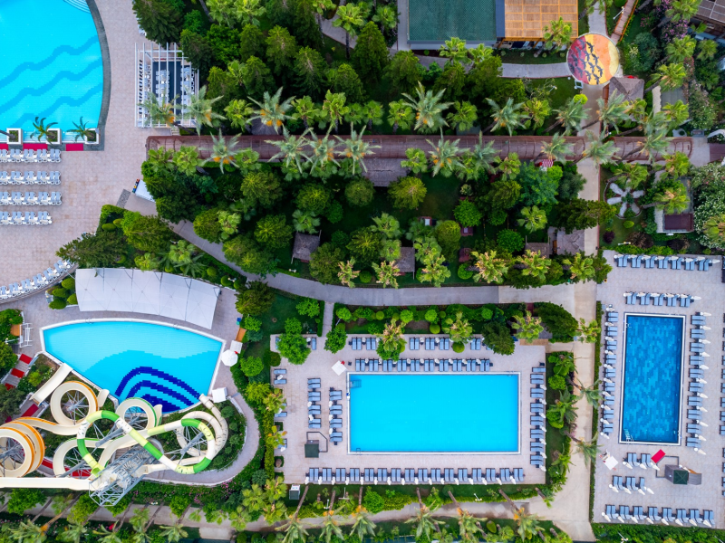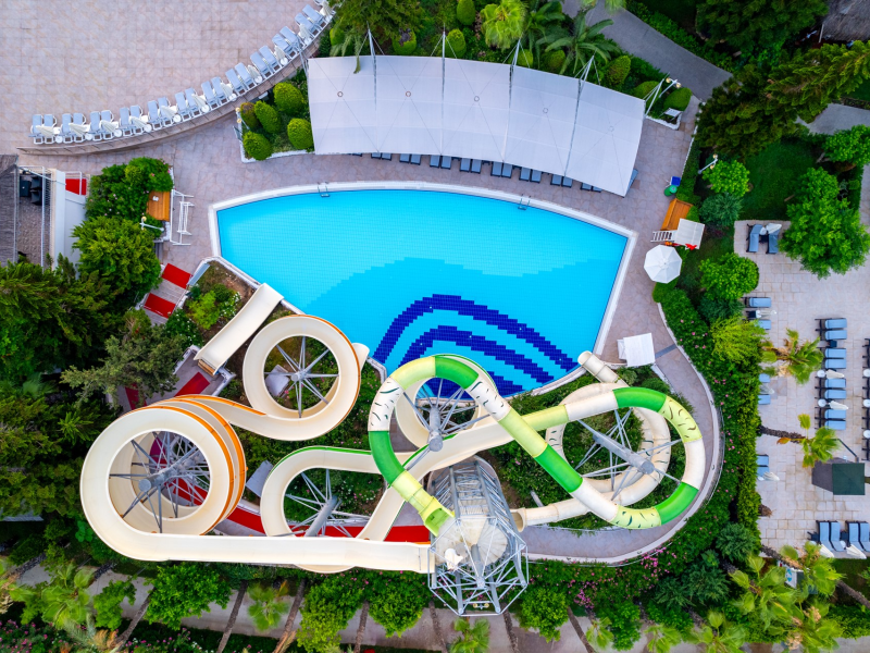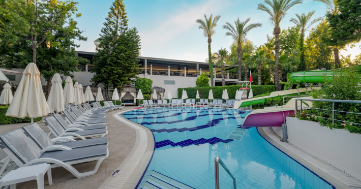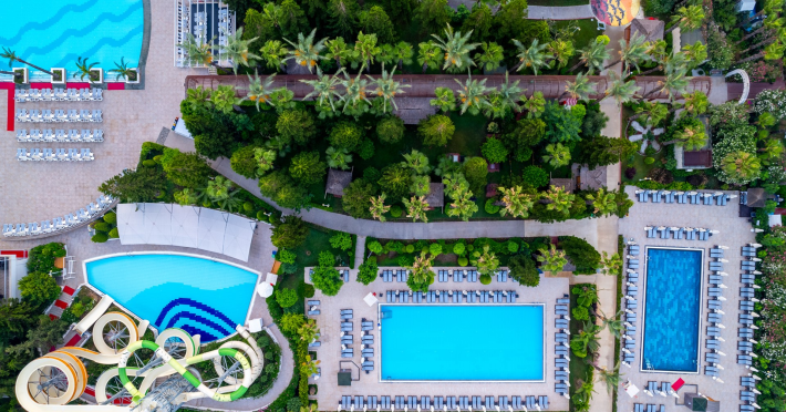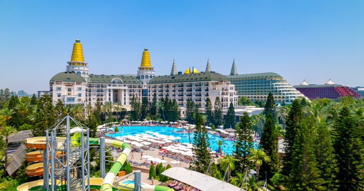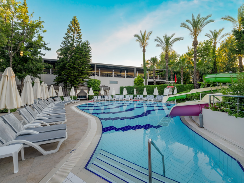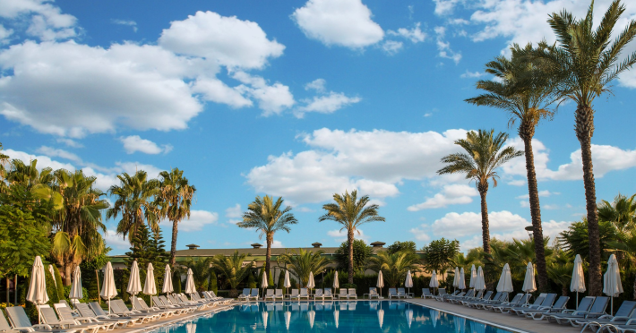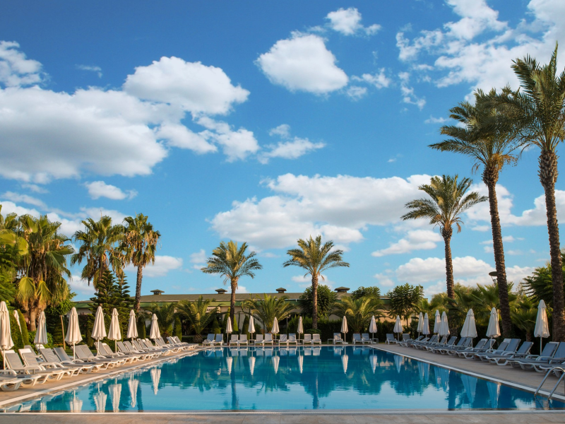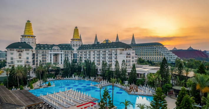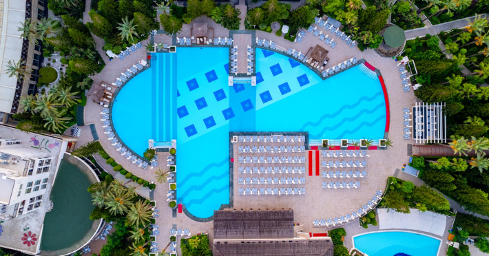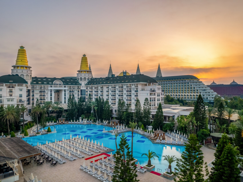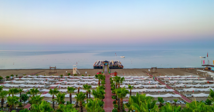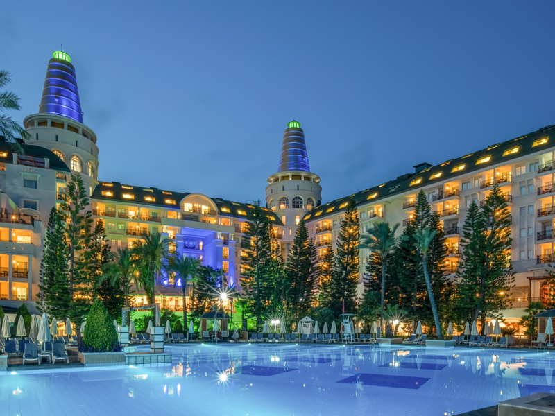 Vastul complex hotelier este situat in zona hotelurilor de lux si cele mai cautate de pe Riviera Turciei, in Lara. Este situat direct pe o frumoasa plaja cu nisip, ofera servicii de inalt nivel si astfel ofera conditii ideale pentru o vacanta placuta si fara griji.