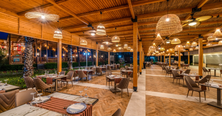 Restaurant cu serviciu: 19.00-21.30 dupa rezervarea anterioara 1x per sejur gratuit, turcesc, peste, italian, sushi, japonez, chinezesc si mexican, este necesara rezervare