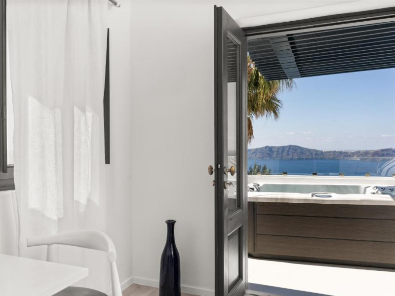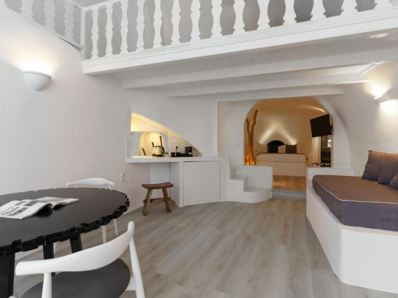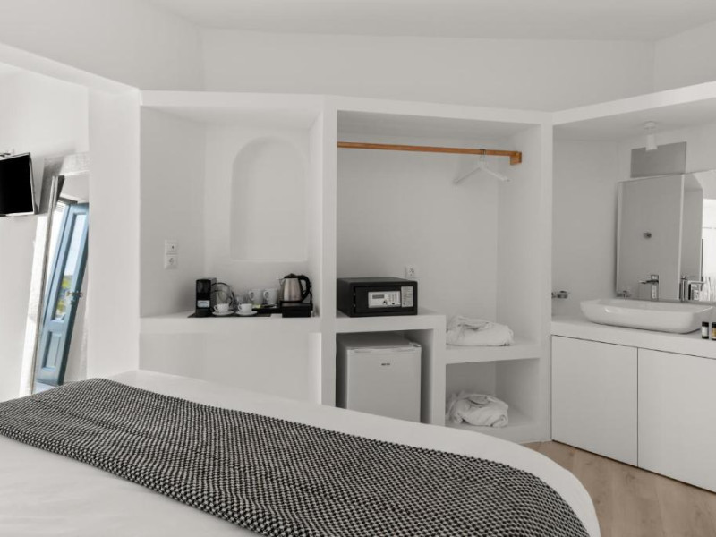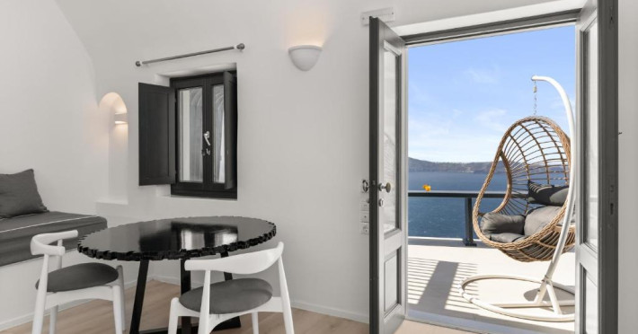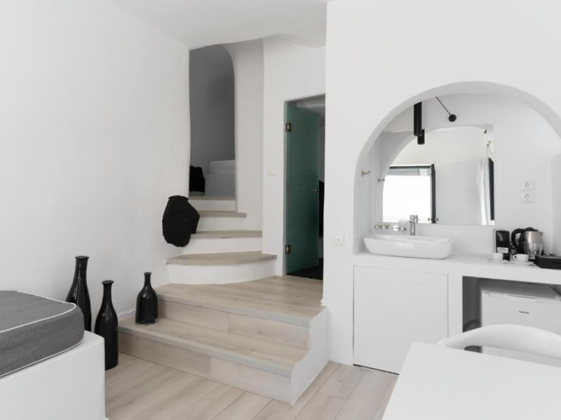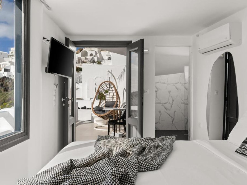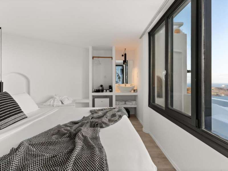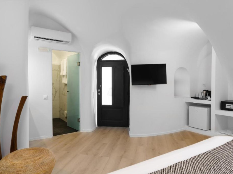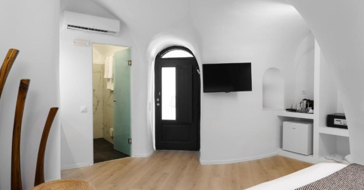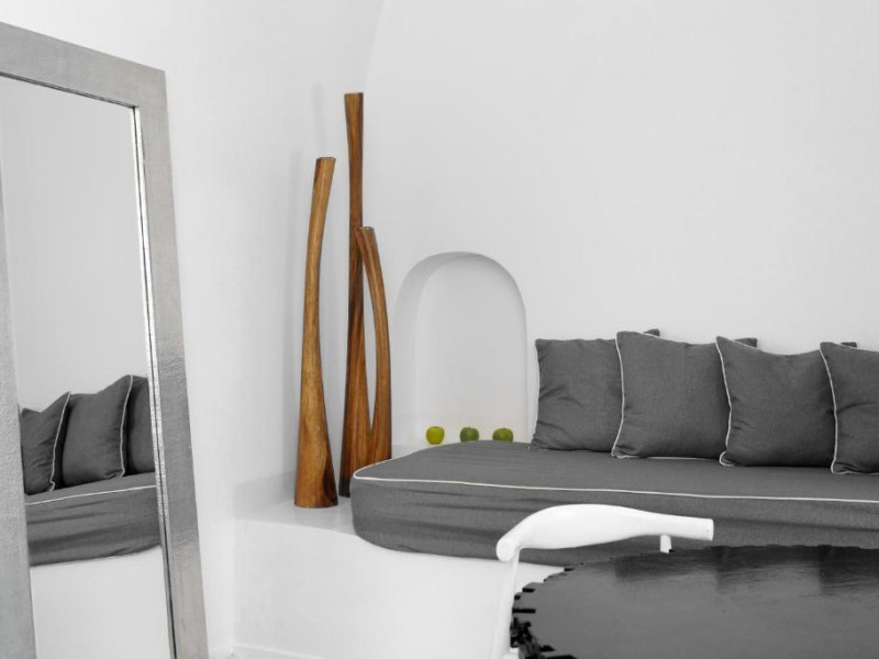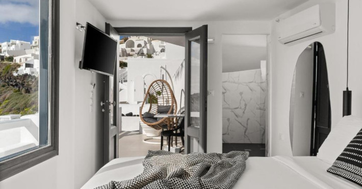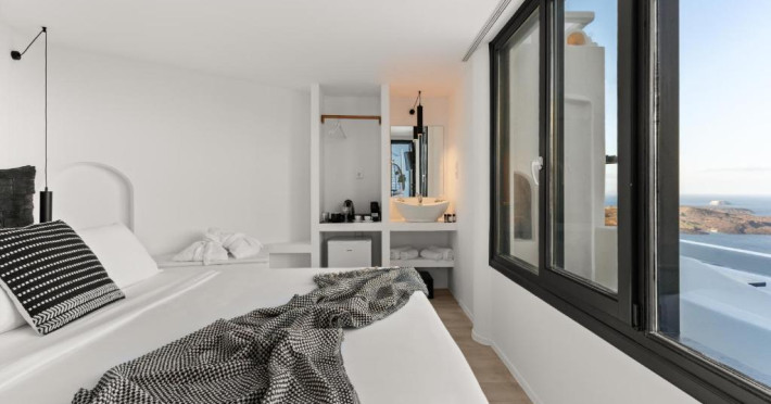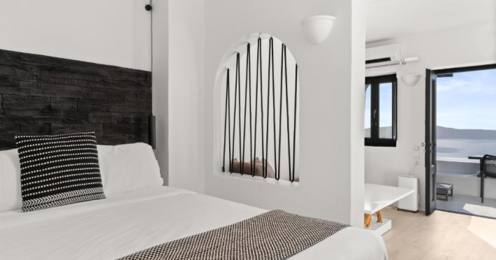 Camerele și suitele, decorate in nuanțe naturale specifice Santorini, dispun de terase private de unde puteți admira apusuri spectaculoase. Piscina infinity cu șezlonguri și zona de lounge oferă un cadru perfect pentru relaxare, in timp ce restaurantul hotelului servește preparate mediteraneene rafinate.