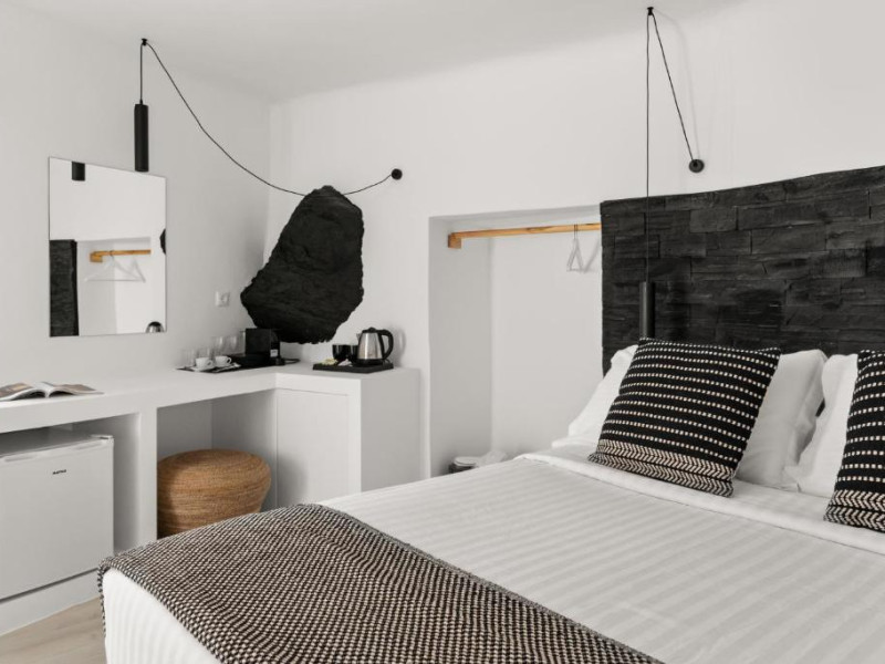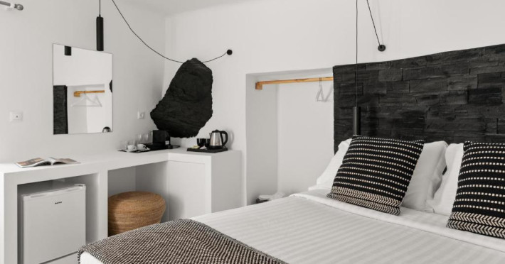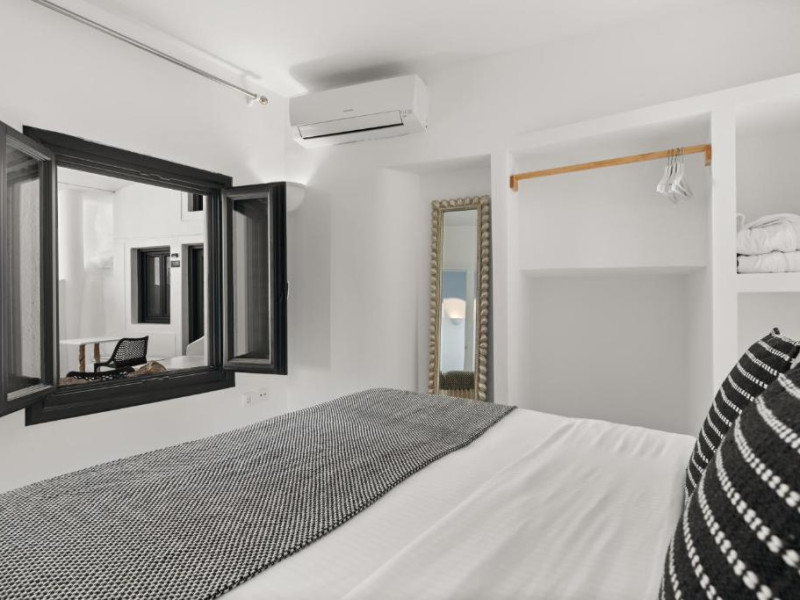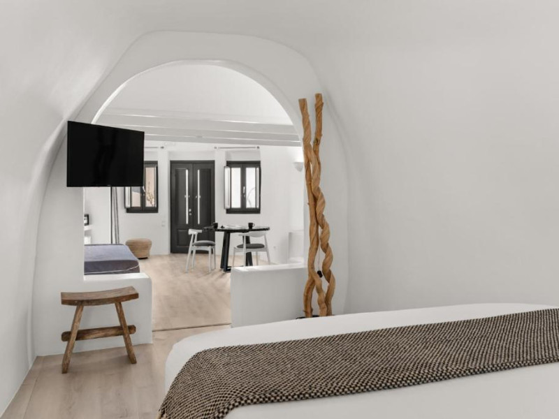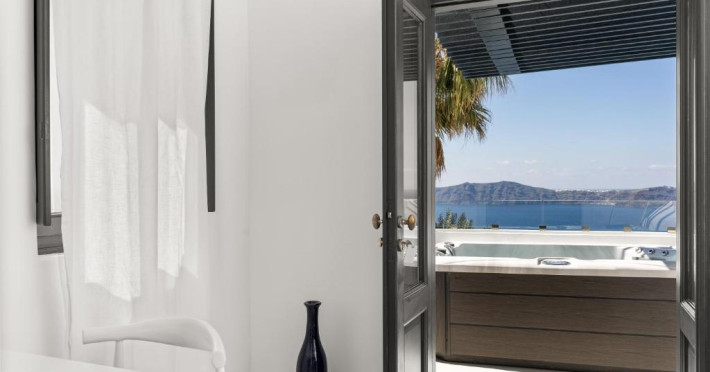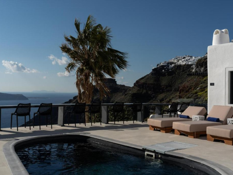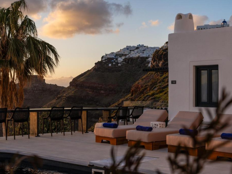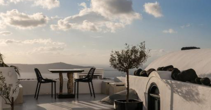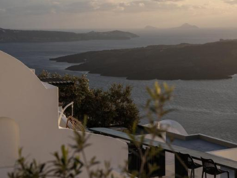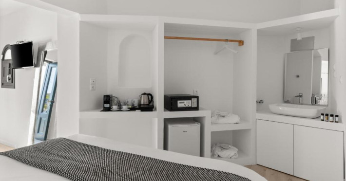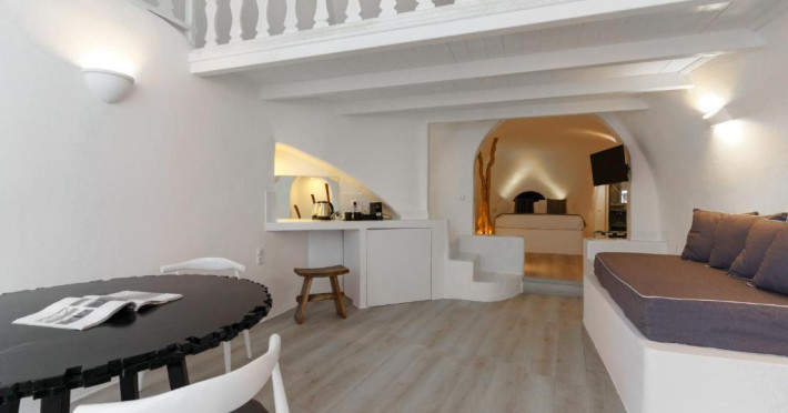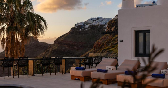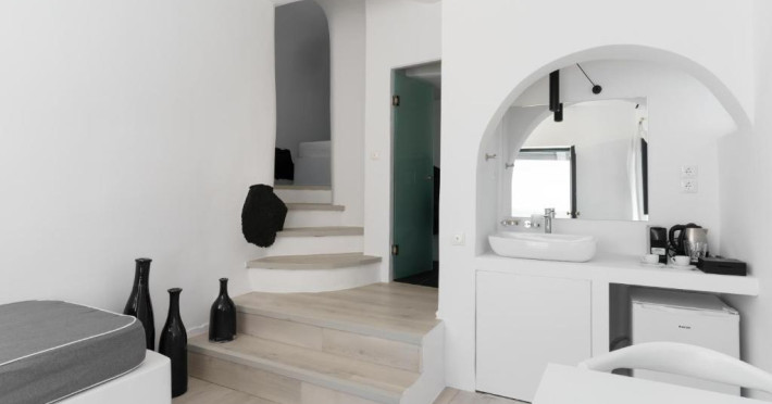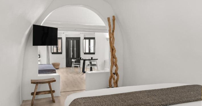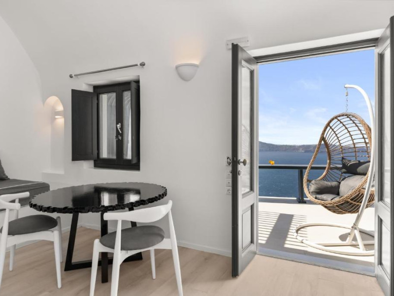 Camerele și suitele, decorate in nuanțe naturale specifice Santorini, dispun de terase private de unde puteți admira apusuri spectaculoase. Piscina infinity cu șezlonguri și zona de lounge oferă un cadru perfect pentru relaxare, in timp ce restaurantul hotelului servește preparate mediteraneene rafinate.