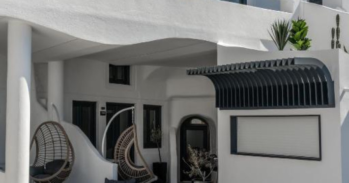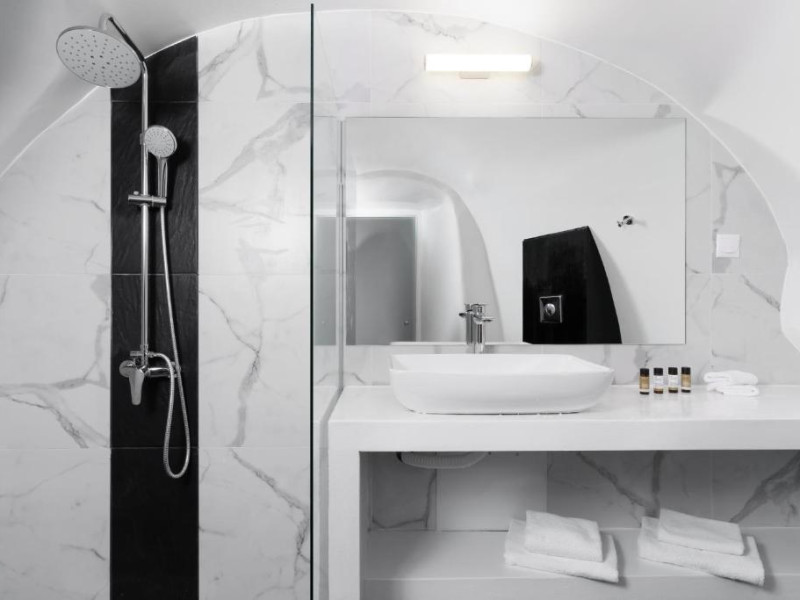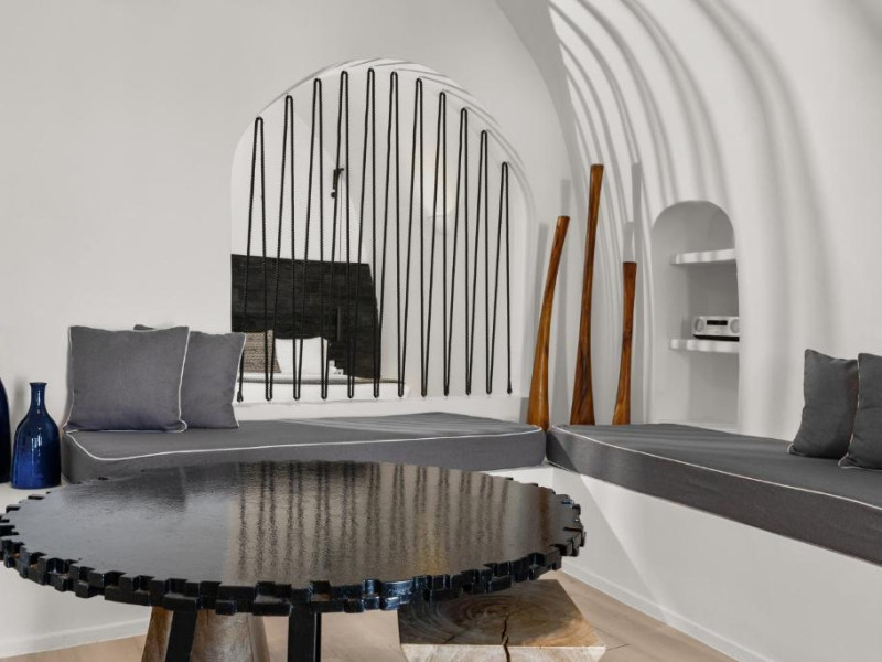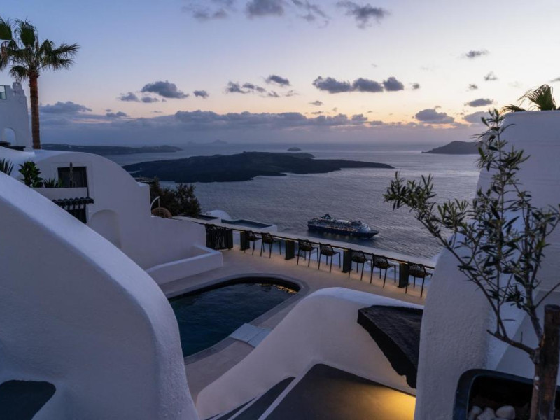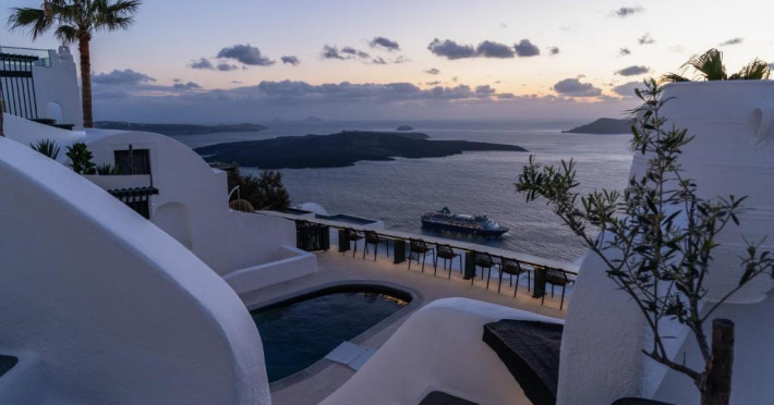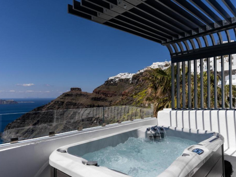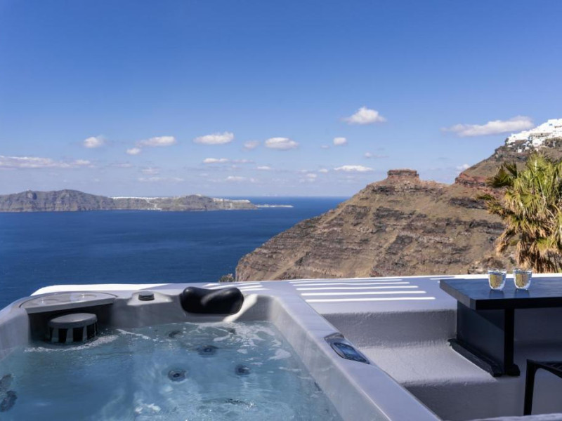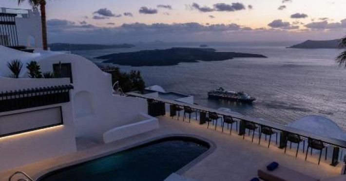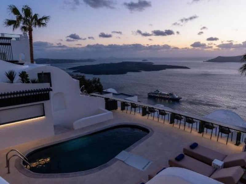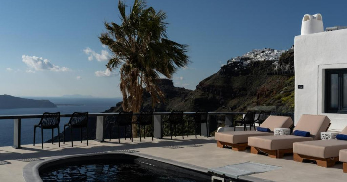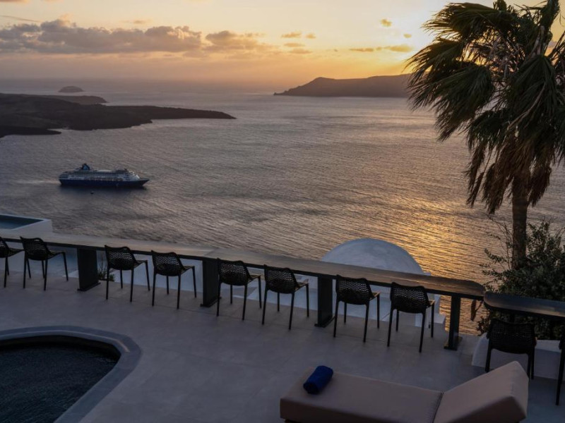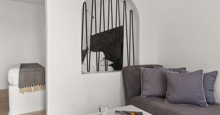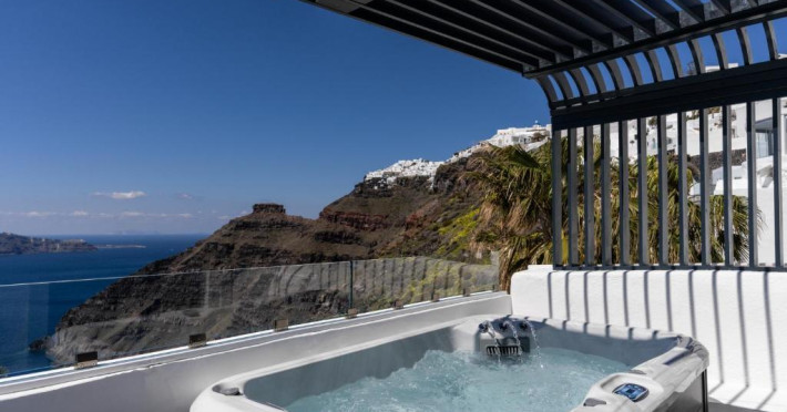Camerele și suitele, decorate in nuanțe naturale specifice Santorini, dispun de terase private de unde puteți admira apusuri spectaculoase. Piscina infinity cu șezlonguri și zona de lounge oferă un cadru perfect pentru relaxare, in timp ce restaurantul hotelului servește preparate mediteraneene rafinate.