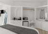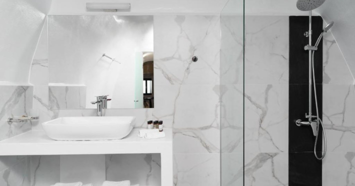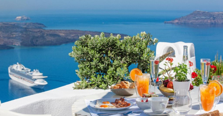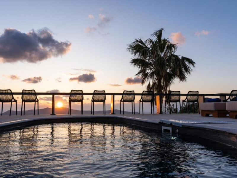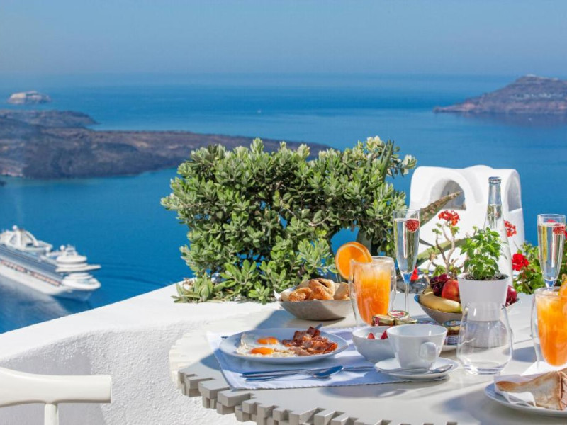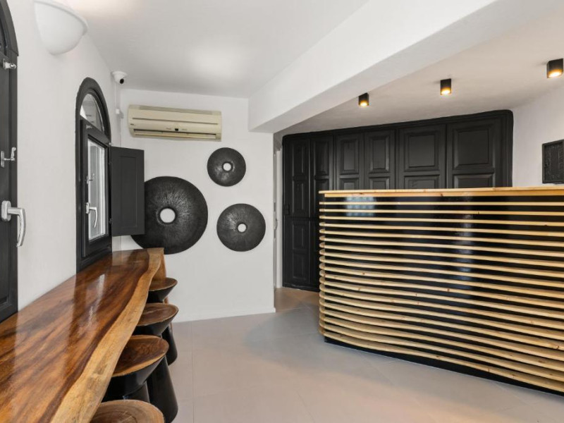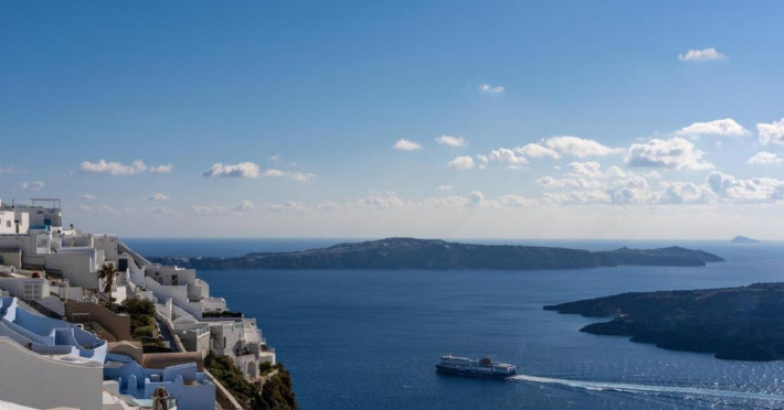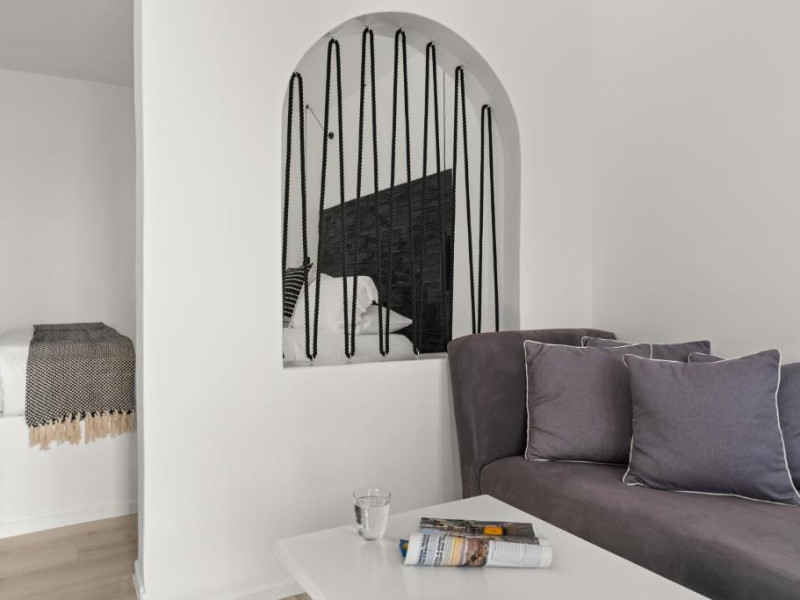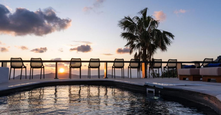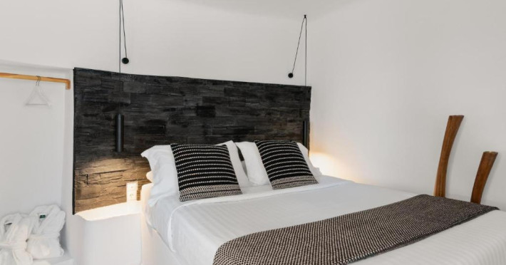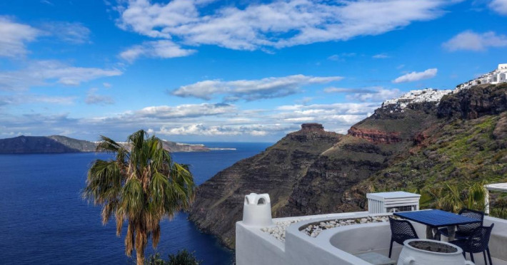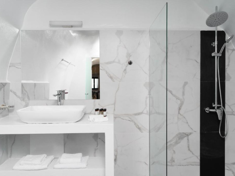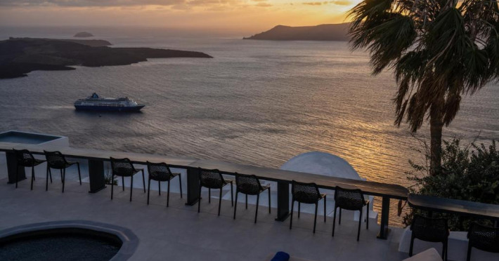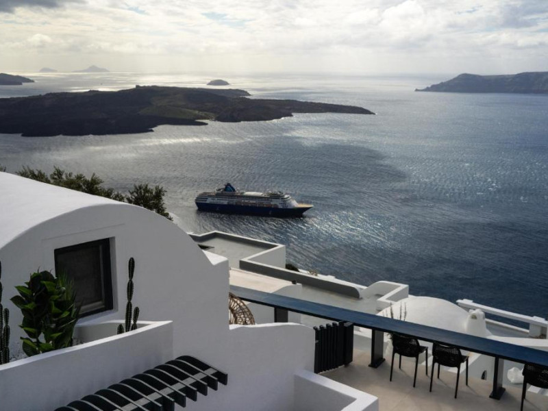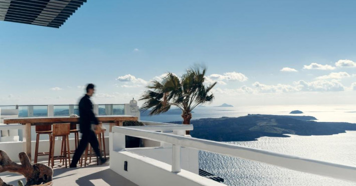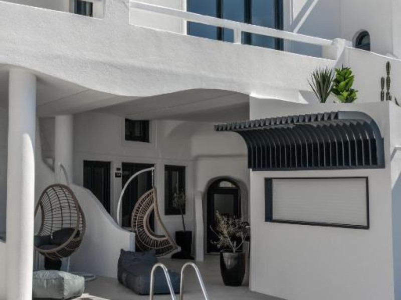 Camerele și suitele, decorate in nuanțe naturale specifice Santorini, dispun de terase private de unde puteți admira apusuri spectaculoase. Piscina infinity cu șezlonguri și zona de lounge oferă un cadru perfect pentru relaxare, in timp ce restaurantul hotelului servește preparate mediteraneene rafinate.
