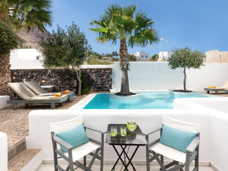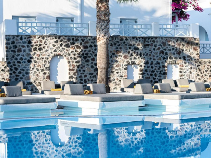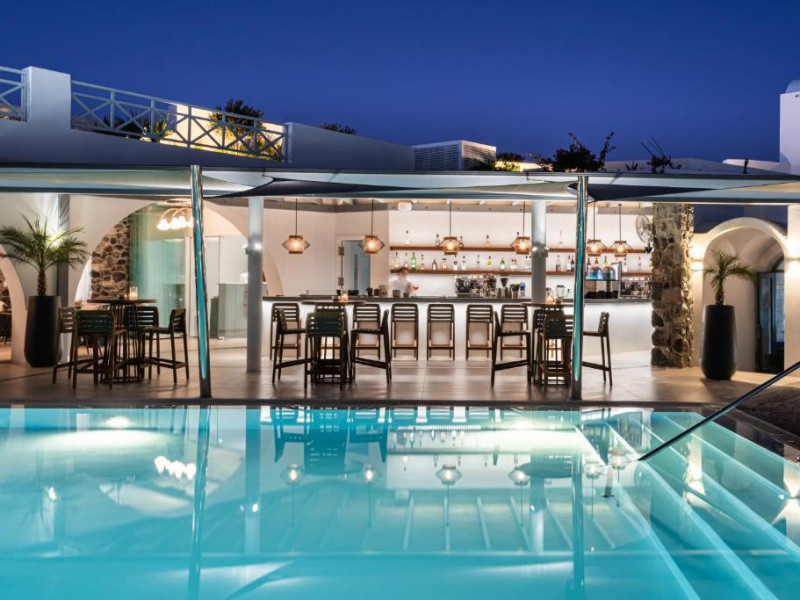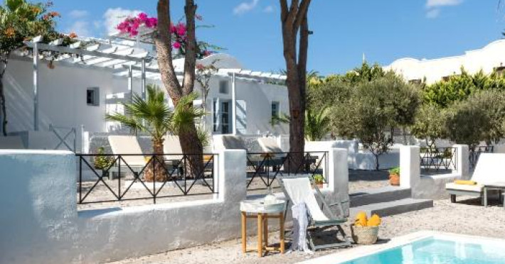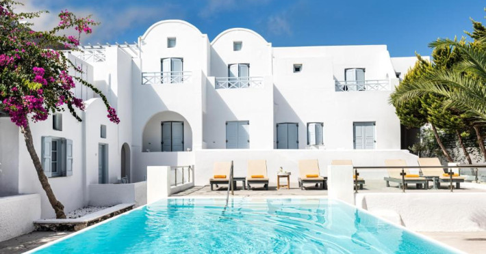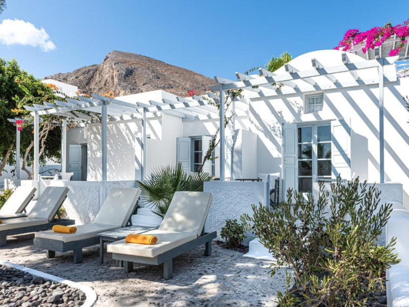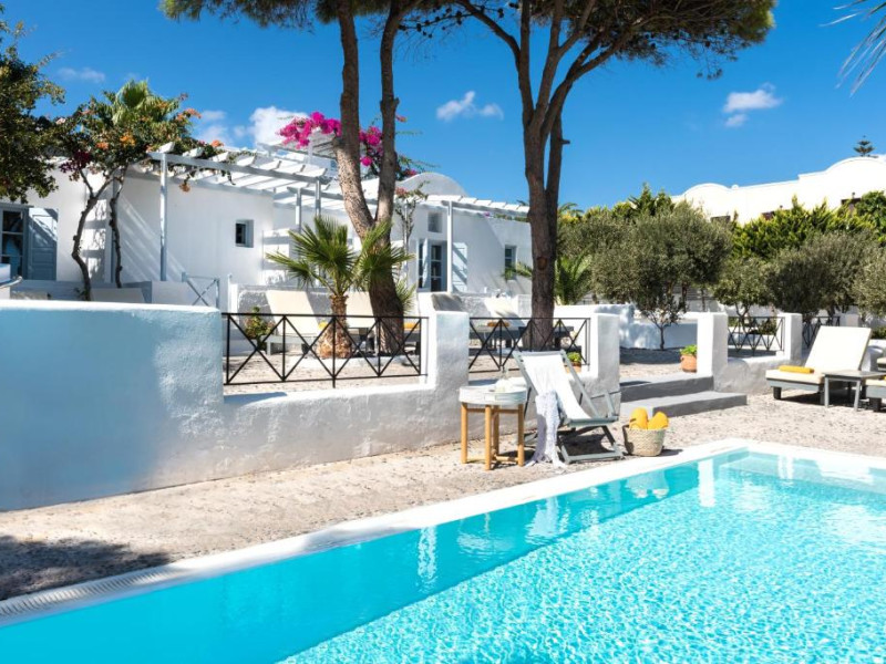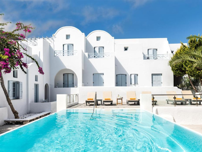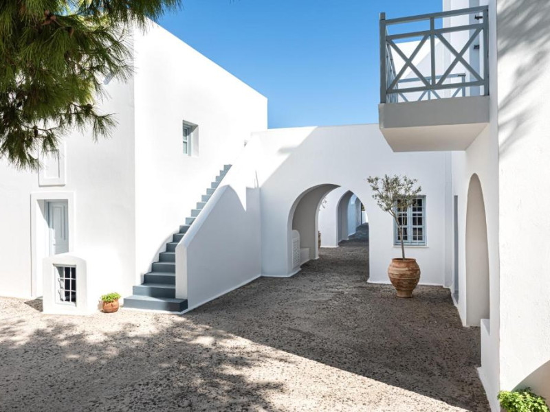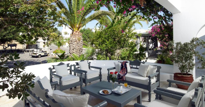 Hotelul este situat la 4 km de Aeroportul International Santorini, la 10 km de portul Athinios si la 10 km de capitala Fira. Ruinele anticei Thira se află pe un deal, la mică distantă de hotel.