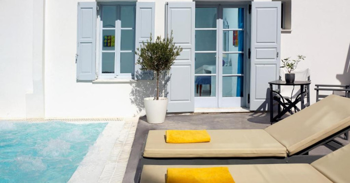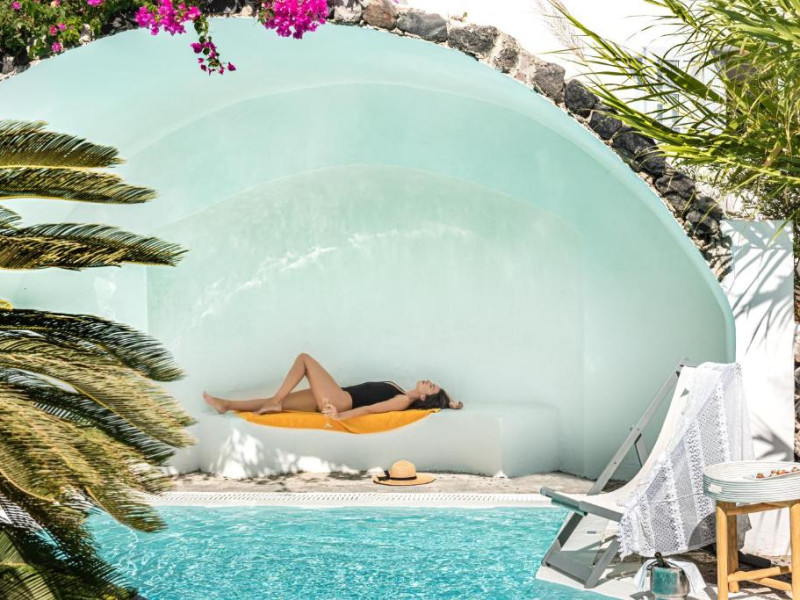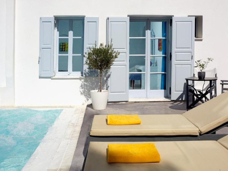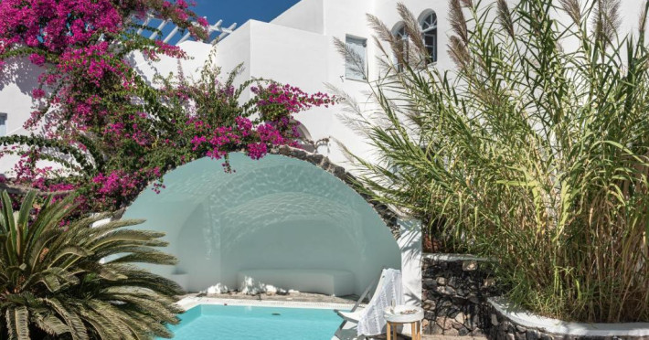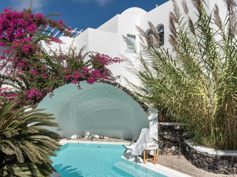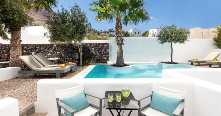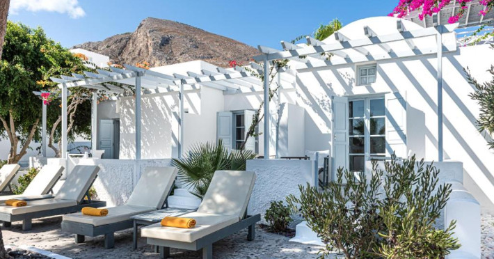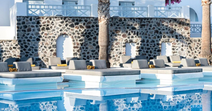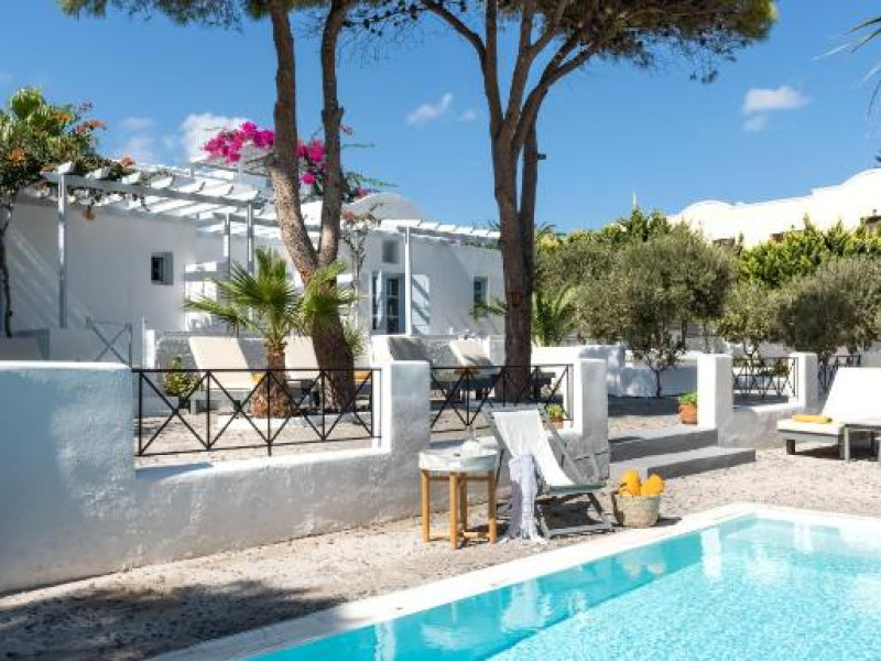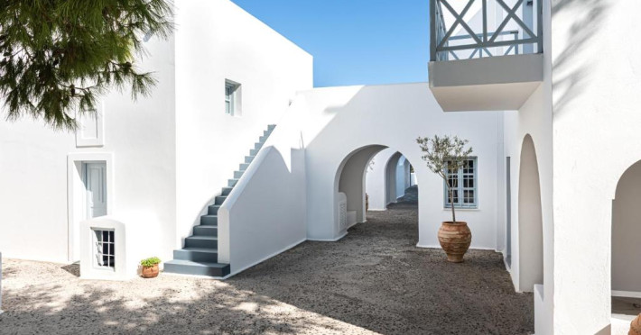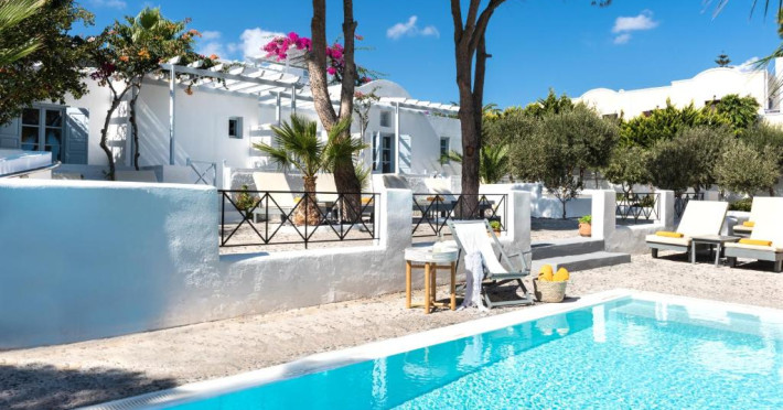 Hotelul este situat la 4 km de Aeroportul International Santorini, la 10 km de portul Athinios si la 10 km de capitala Fira. Ruinele anticei Thira se află pe un deal, la mică distantă de hotel.