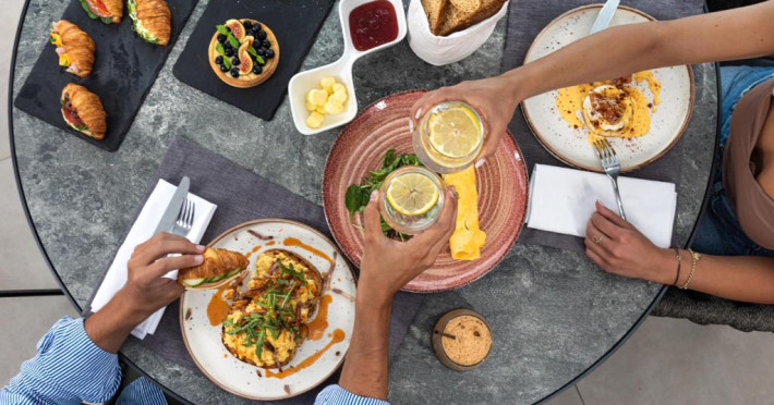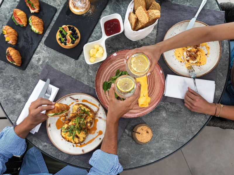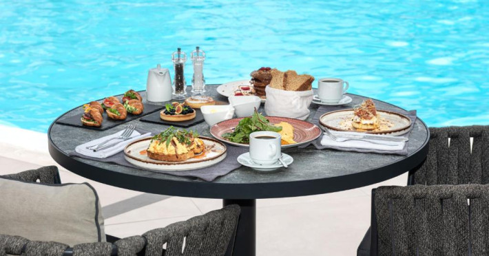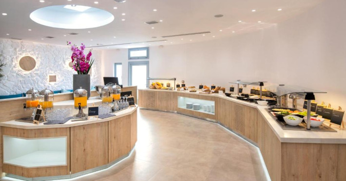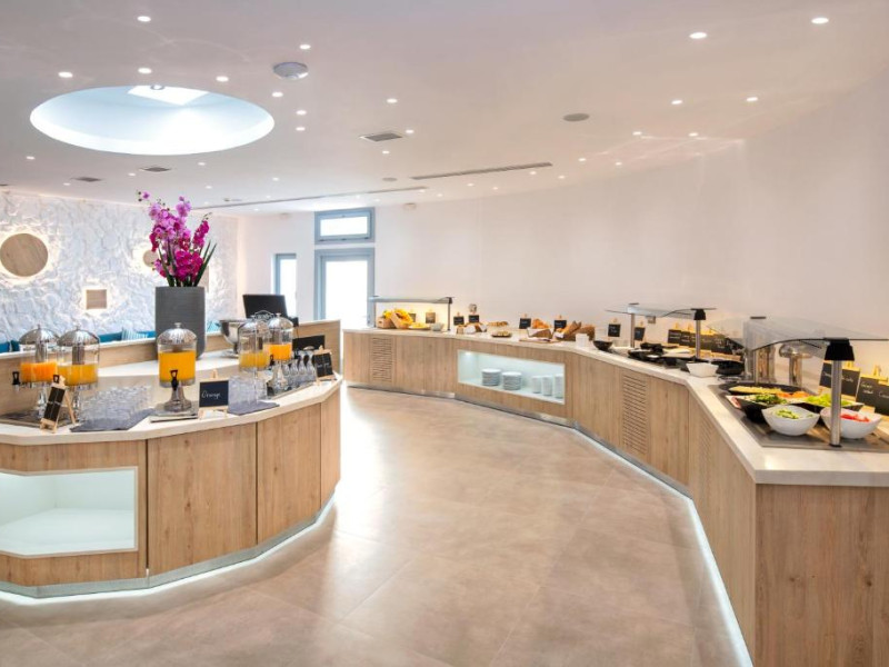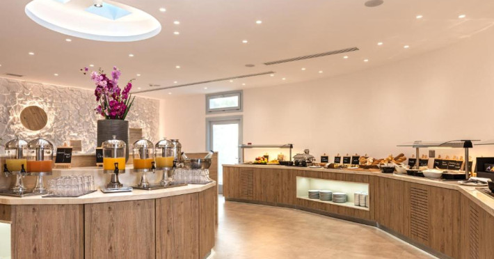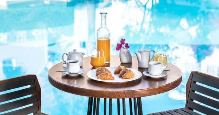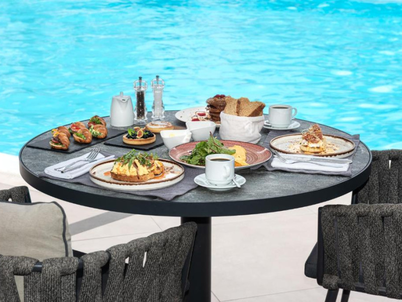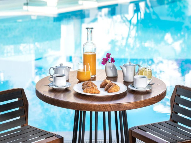 Un bogat si variat mic dejun tip bufet este servit zilnic, pană la amiază. Oaspetii pot savura masa de pranz, cocktailuri sau cina la restaurantul de la piscină.