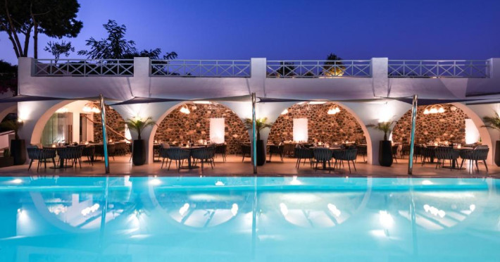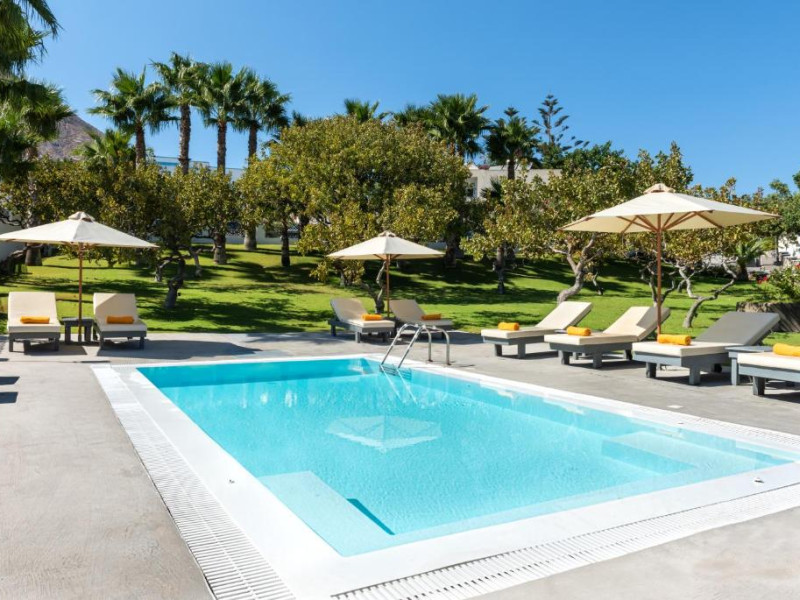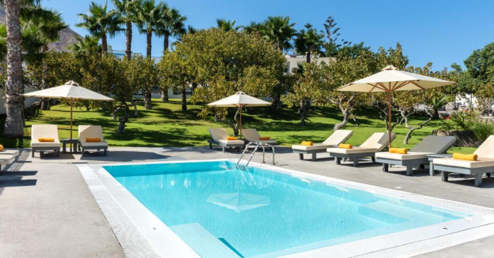 Santorini Kastelli Resort se bucură de o locatie retrasă, la doar 2 minute de mers pe jos de plaja Kamari. Inconjurat de grădini inmiresmate si de peluze luxuriante, complexul de 5 stele oferă 2 piscine, un centru spa si un restaurant cu bar la piscină.